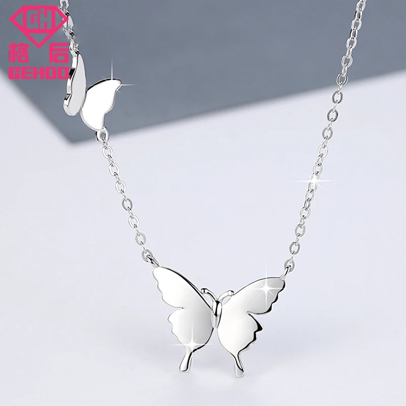 925 Sterling Silver Fresh Pendant Necklace Butterfly Papillons Women Elegant Fine Jewelry Collier Nice Gift For Lady Girl