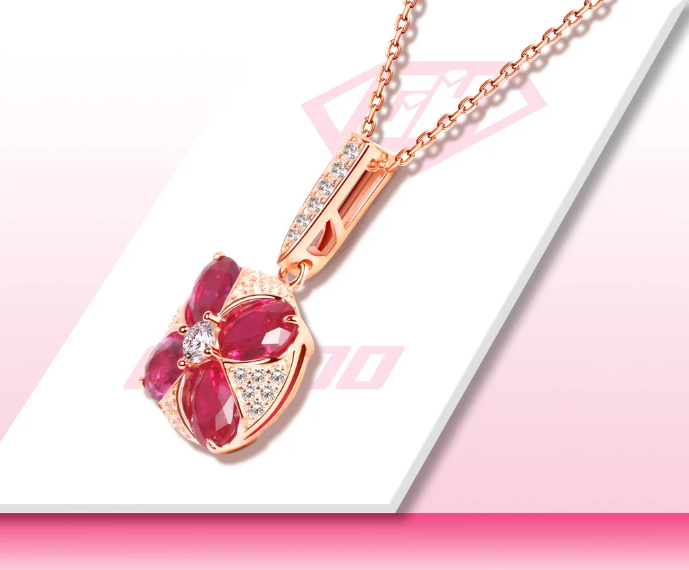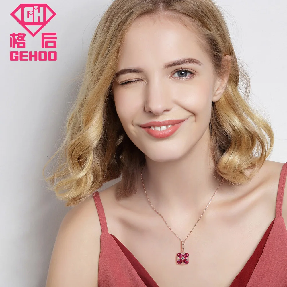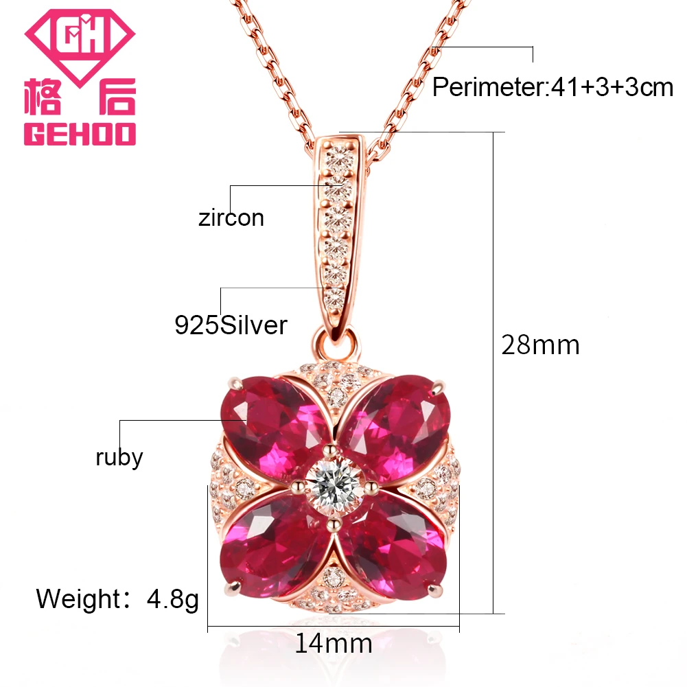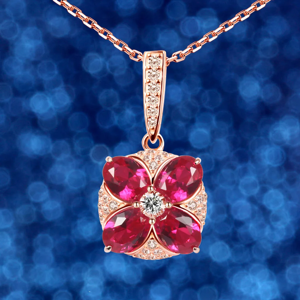 Luxury 100% 925 Sterling Silver Necklace Jewelry Red Ruby Four Leaf Clover Zircon Pendant Rose Gold Chain Charm Necklaces