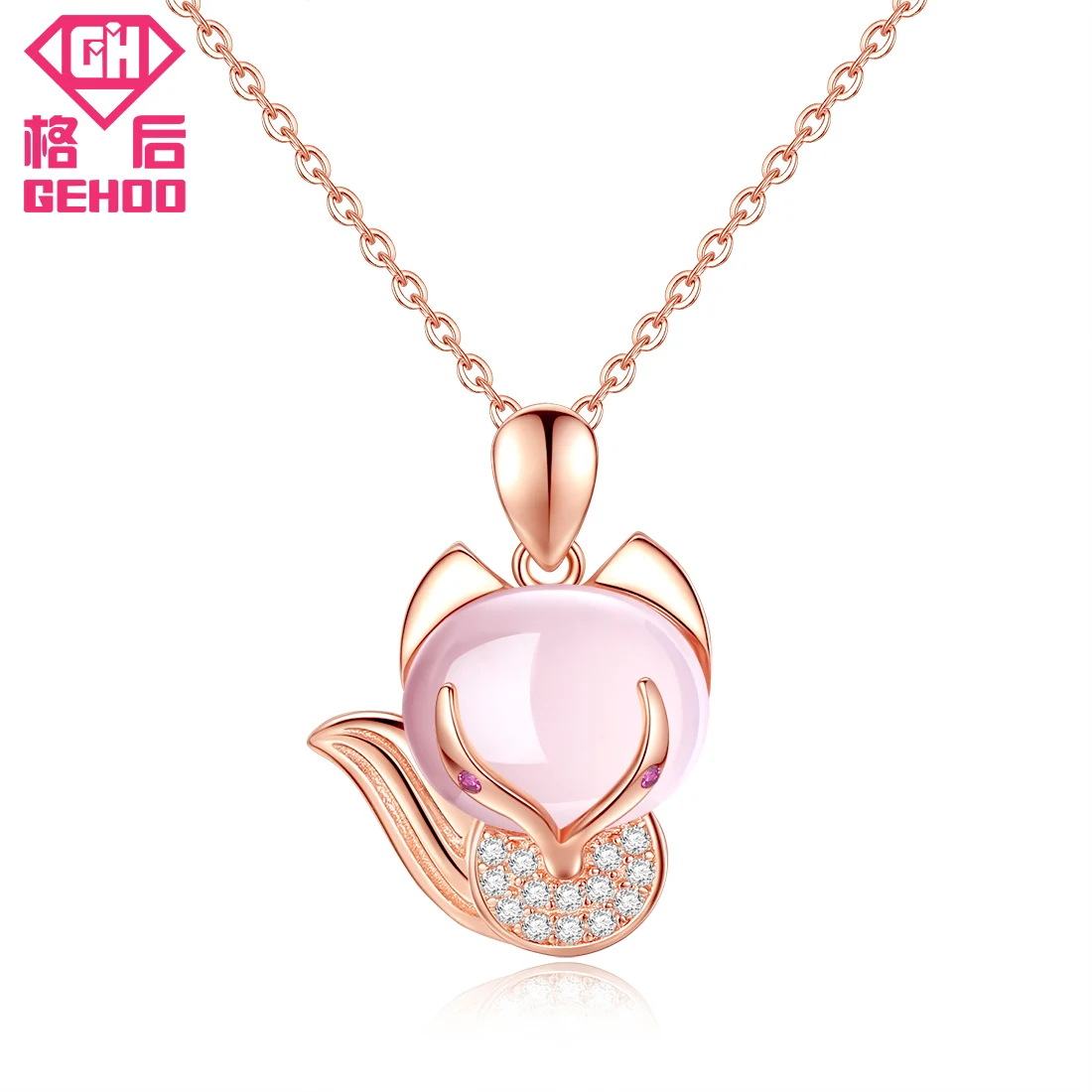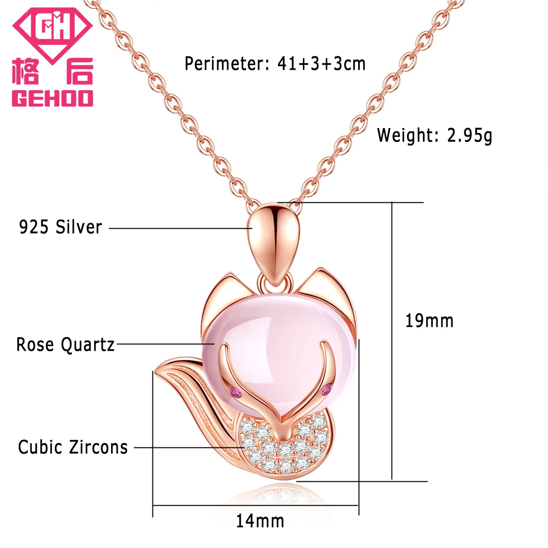 New Arrival Pretty Gems Stone 925 Sterling Silver Pendent Necklace Lovely Fox Pink Rose Quartz Zircon For Lady Nice Gift