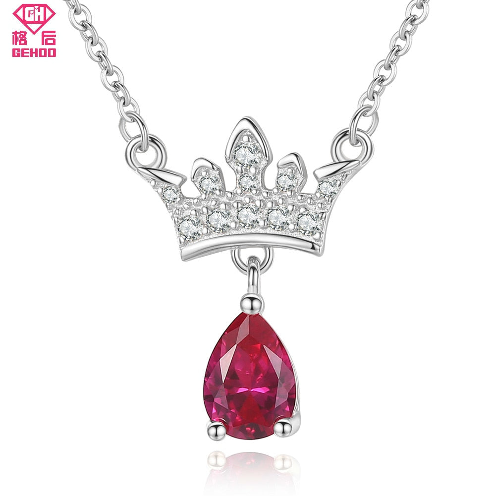 Red Ruby CZ Stones 100% 925 Sterling Silver Rose Gold Chain Necklace Crown Pendant Necklaces for Women Choker Jewelry Gift