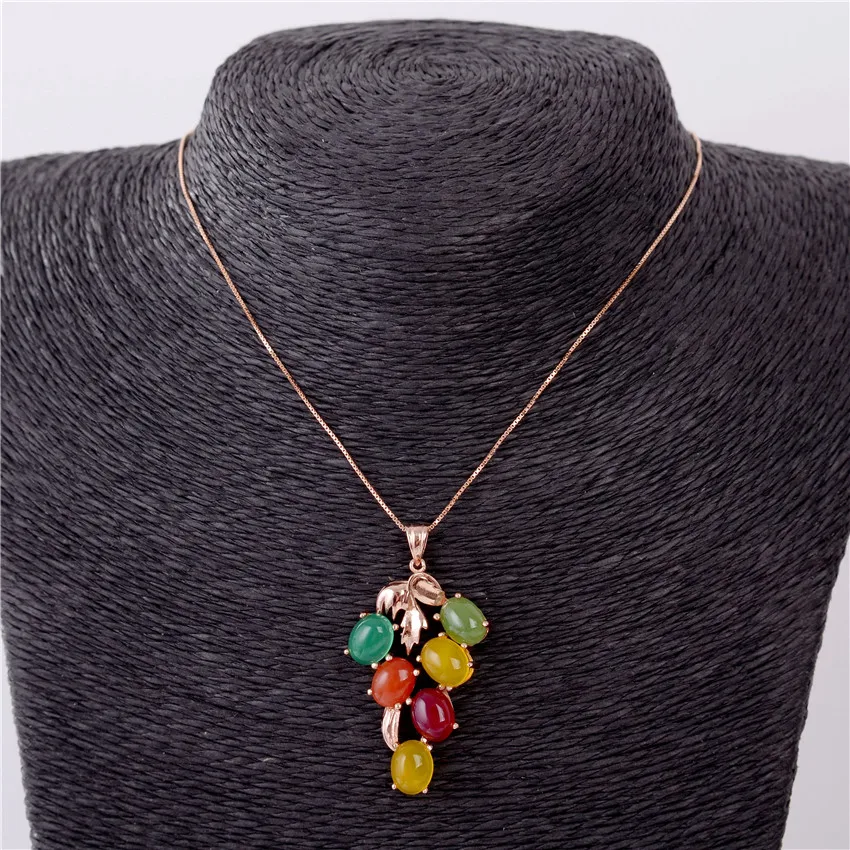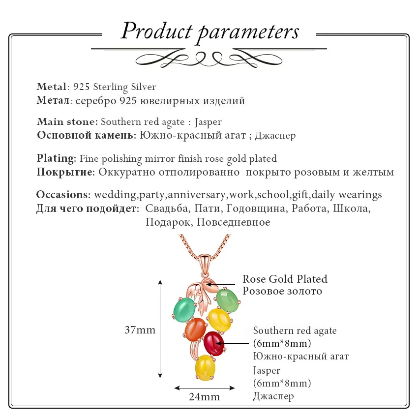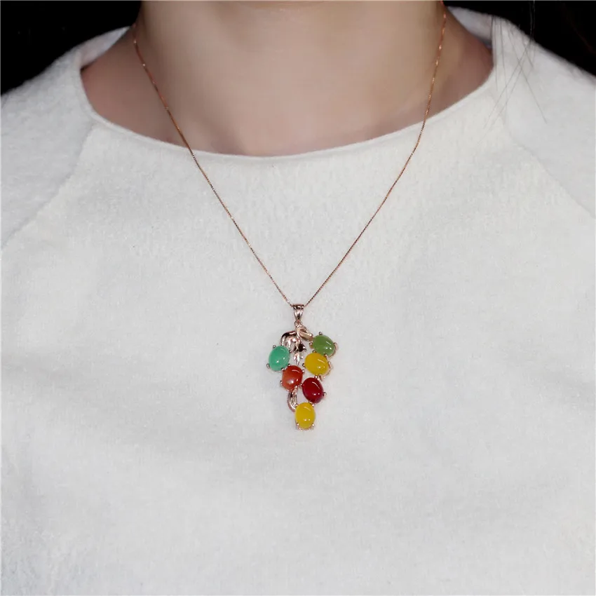 Female Multicolor Grape Jasper Pendant Necklace 925 Sterling Silver Rose Gold Color Fruit Jewelry with Chain Box CN023