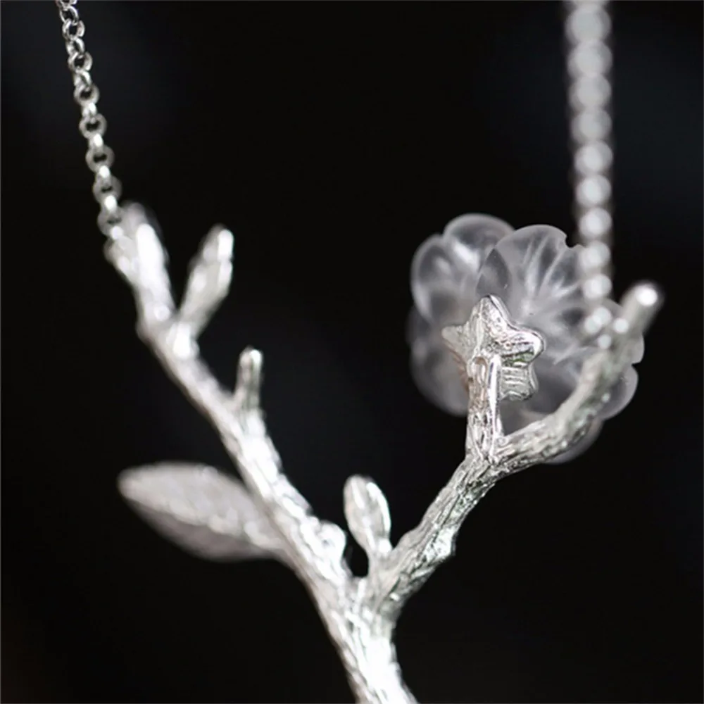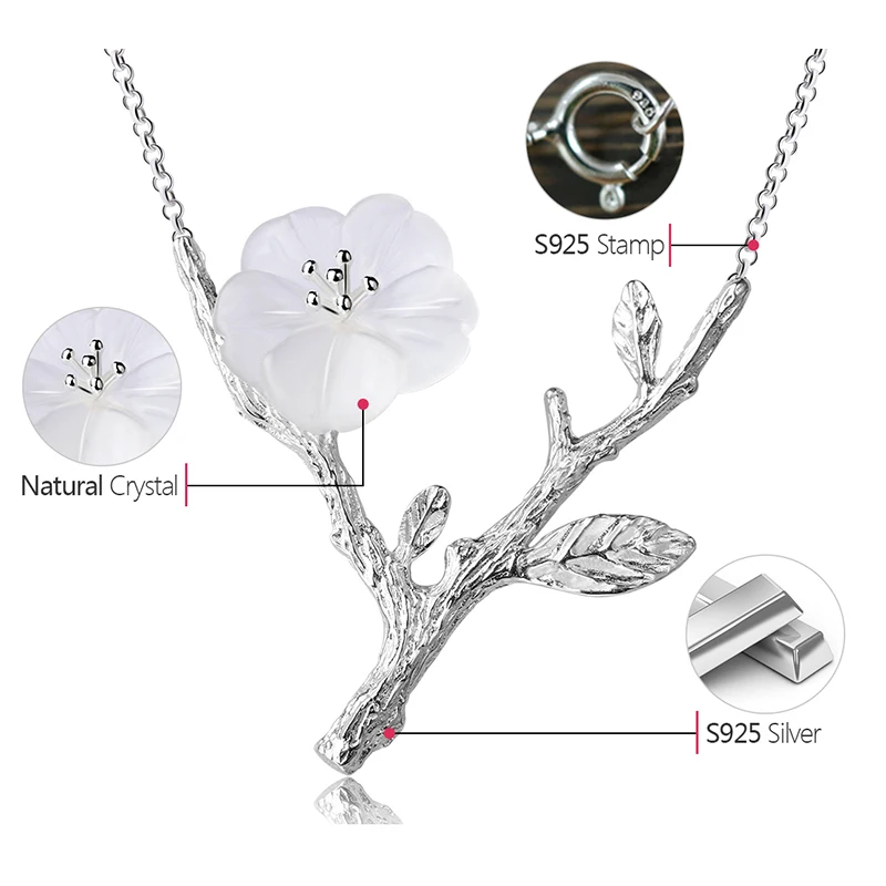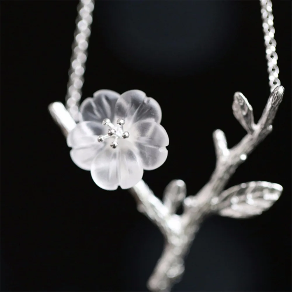 Real 925 Sterling Silver Handmade Designer Fine Jewelry Flower in the Rain Necklace with Pendant for Women Collier