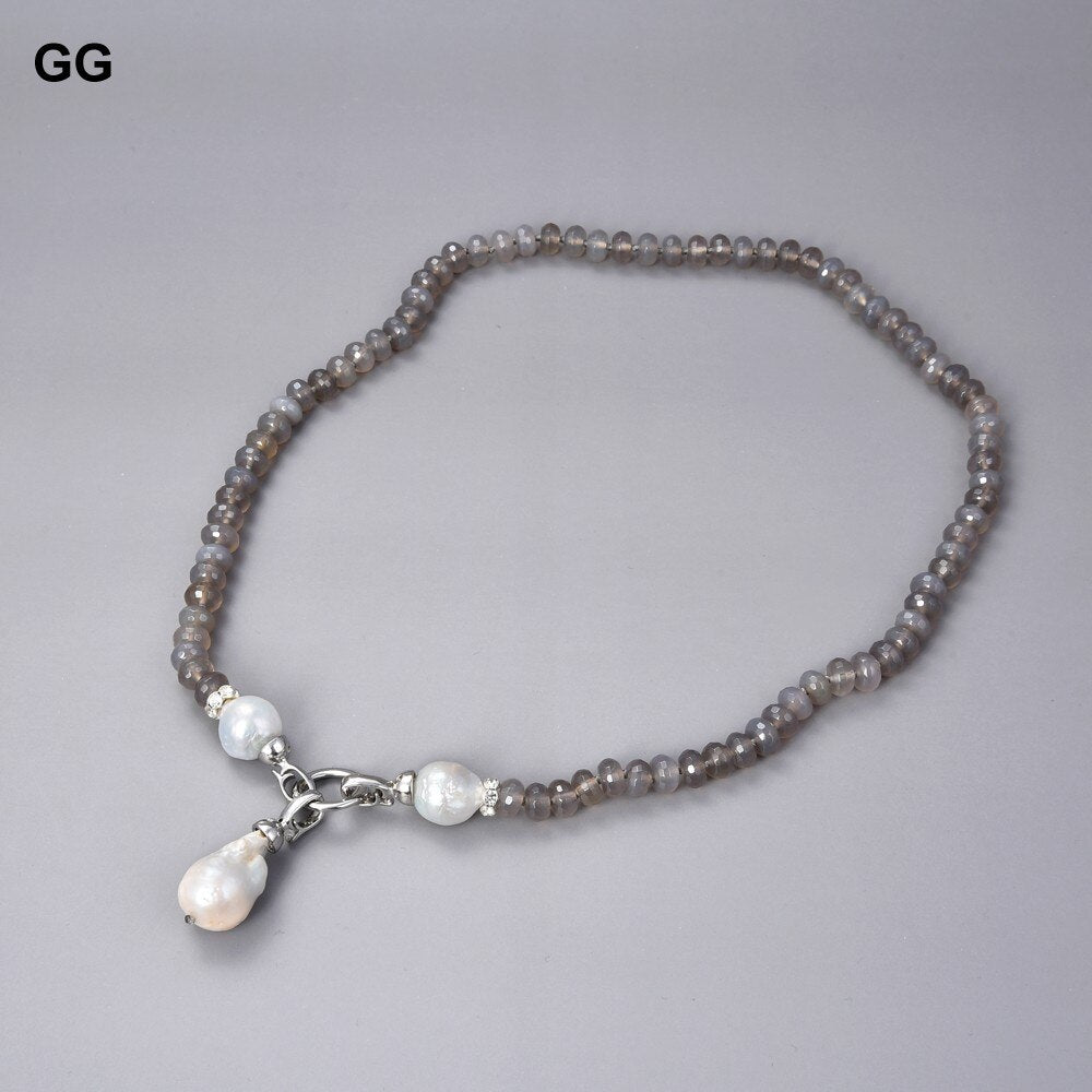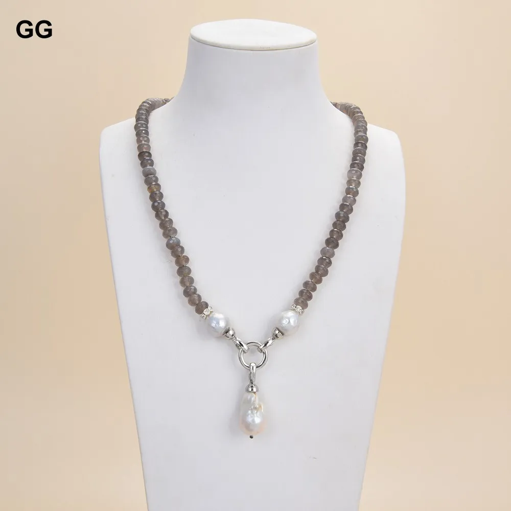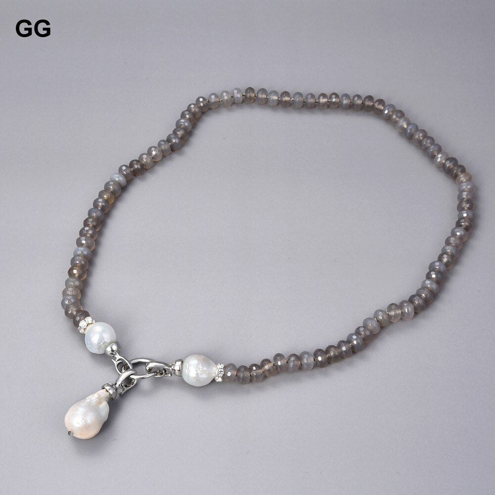 GG Jewelry 23" White Keshi Pearl Gray Agate Pendant Necklace