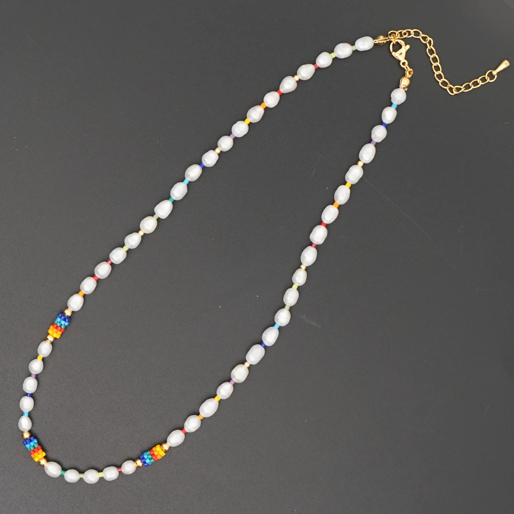 Go2boho Freshwater Pearl Necklace Choker Jewelry Miyuki Beaded Necklaces For Women 2022 Friends Gift Summer Rainbow Jewellery