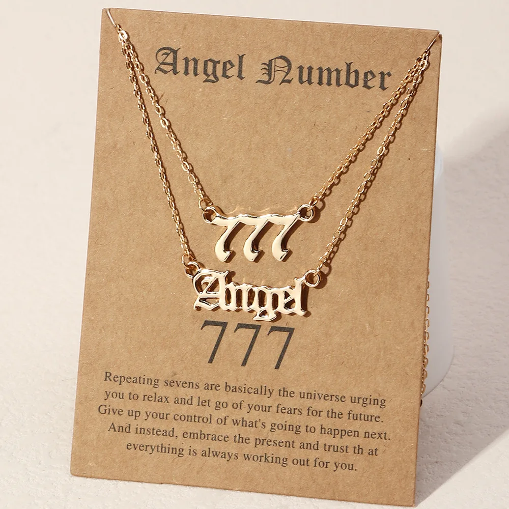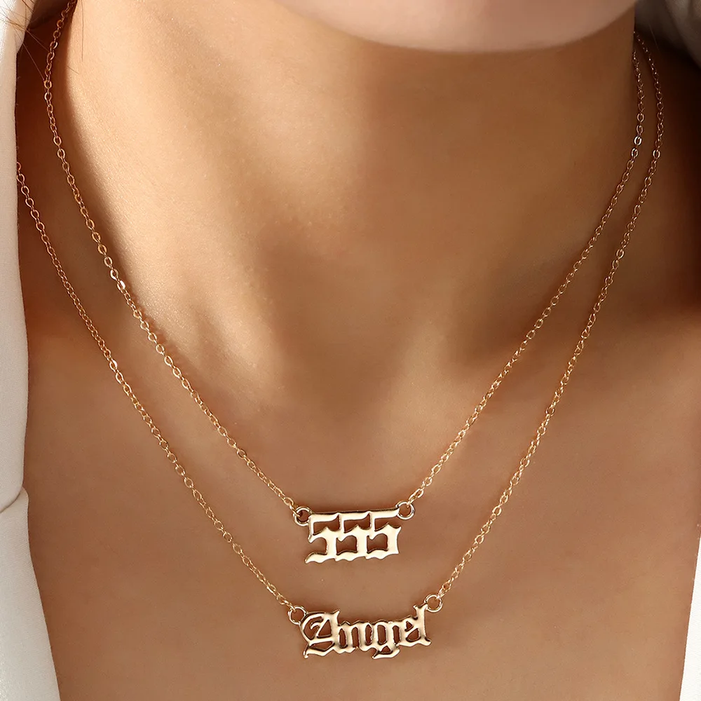 Gold Alloy Angel Lucky Number Letter Multi-layer Chain Pendant Necklace For Women Metal Letter Girl Gift Accessories