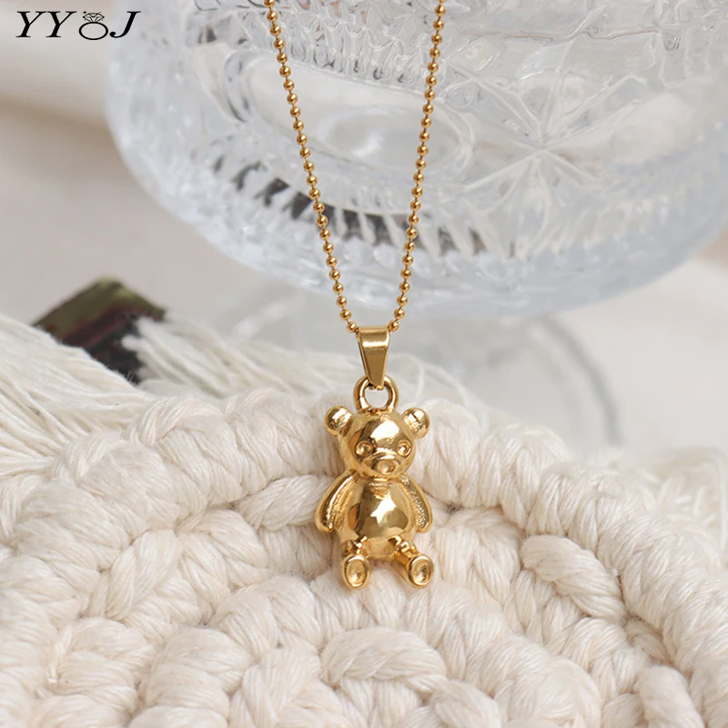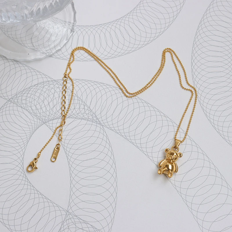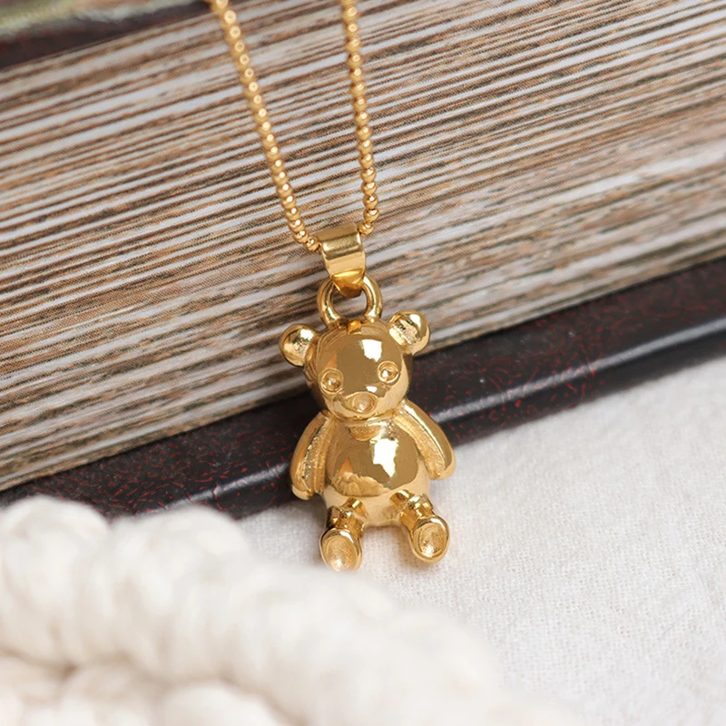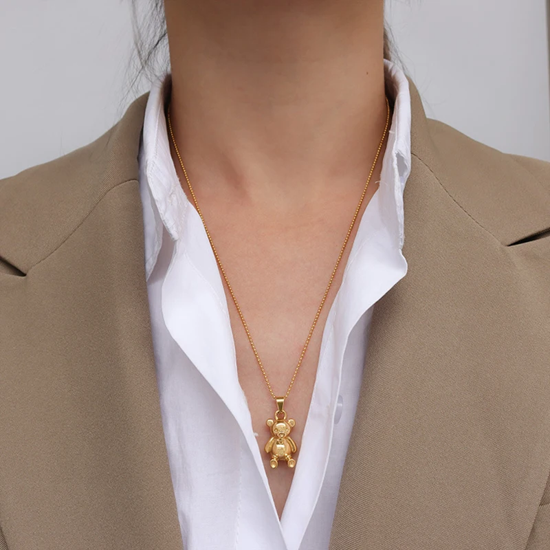 Gold Bear necklace with bear stainless steel long sweater necklace 2022 cute kawaii y2k jewelry for teen egirls trendy jewelry
