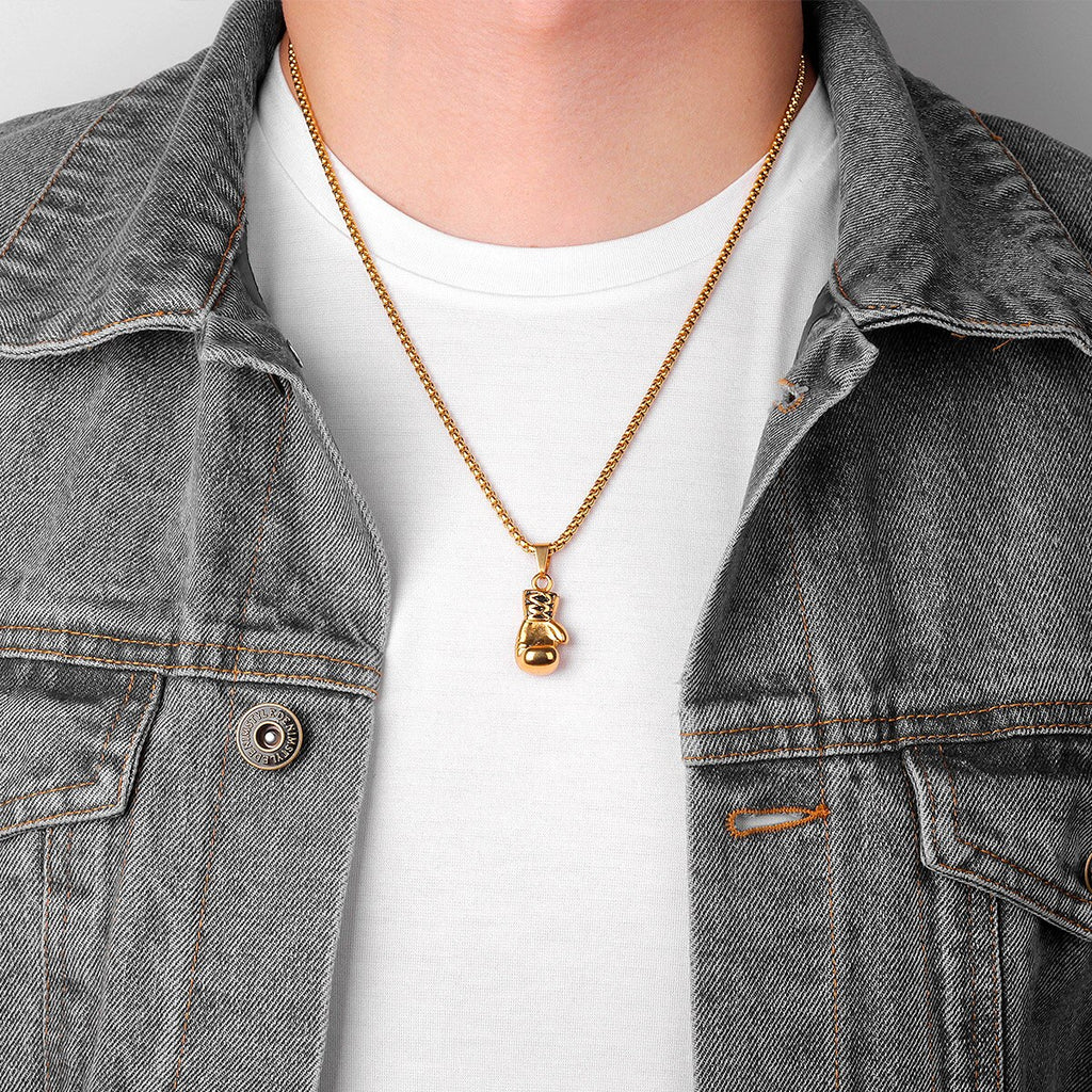 Gold Black Boxing Gloves Boxer Men Necklaces Pendants Chain for Boyfriend Male Stainless Steel Jewelry Creativity Gift