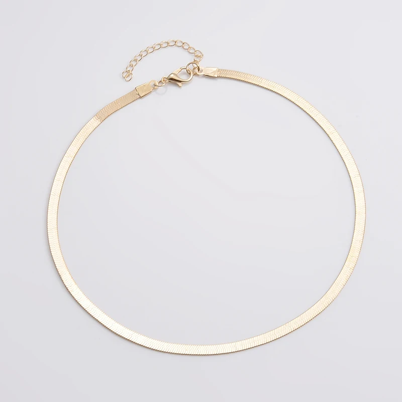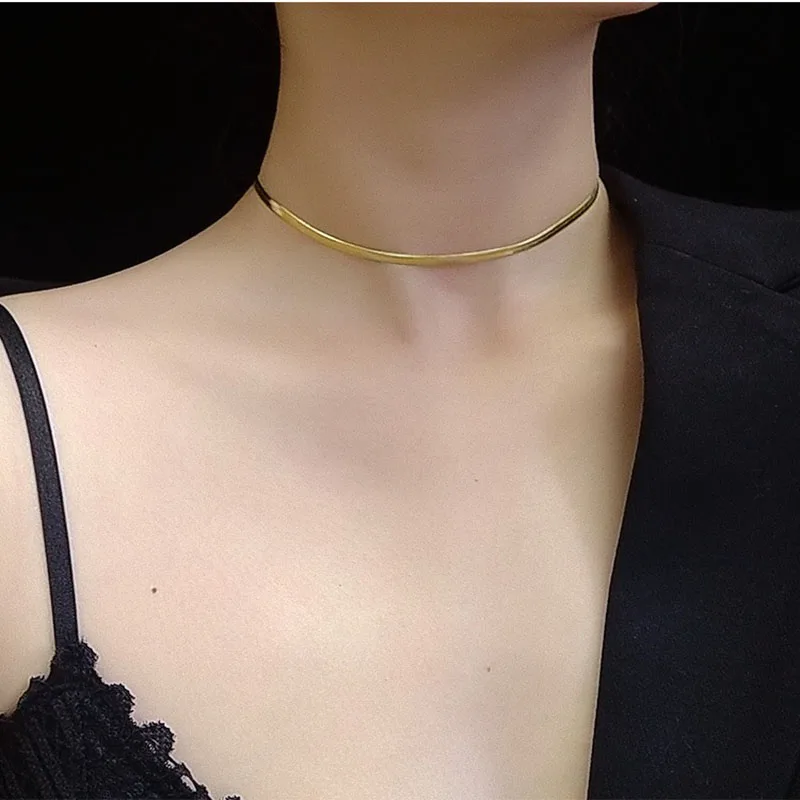 Gold Blade Chain Choker Necklace Women Sexy Flat Snake Chain Jewelry Gift
