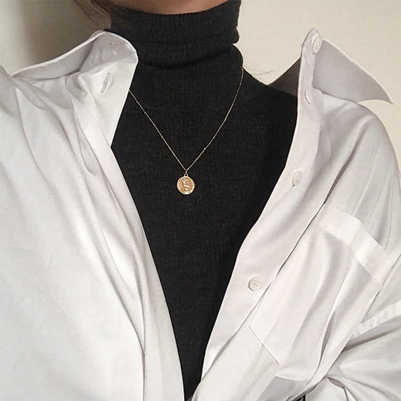 Gold Chain Simple Coin Pendant Necklaces for Women Charms Chunky Link Chains Choker Necklace Statement collar bijoux femme