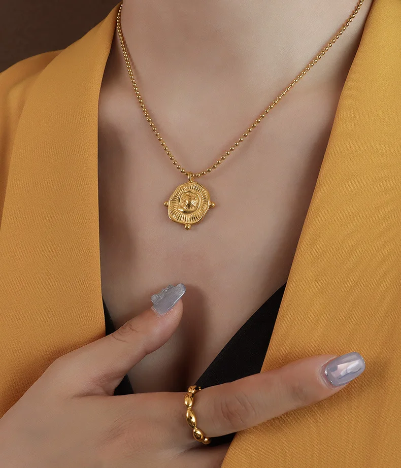 Gold Color 316L Stainless Steel Geometric Pendant Necklace For Women,Trendy Beads Chain Necklaces Woman Jewelry 2022