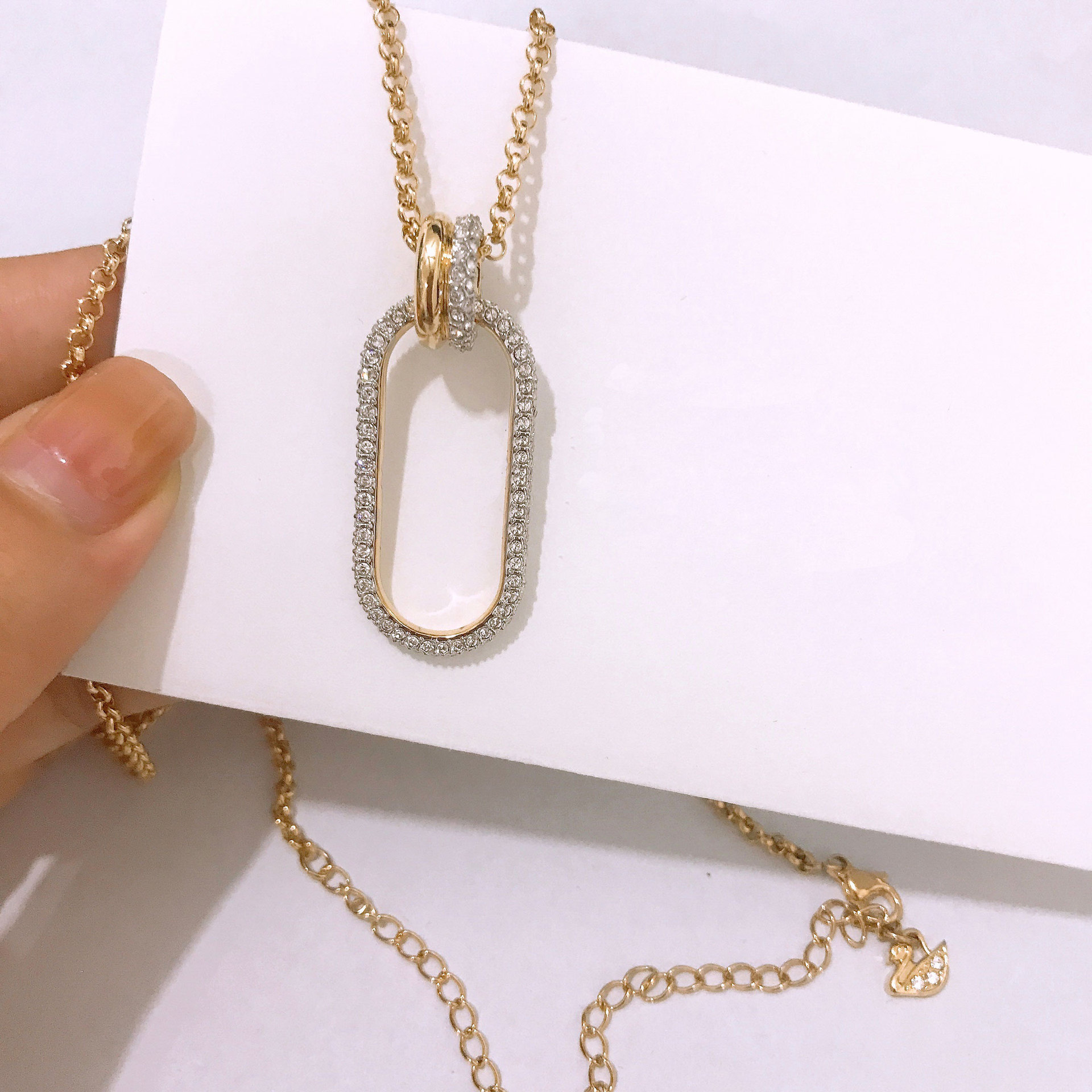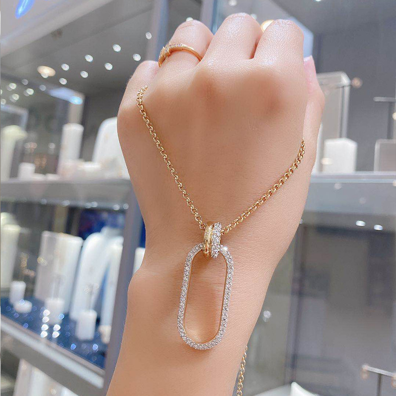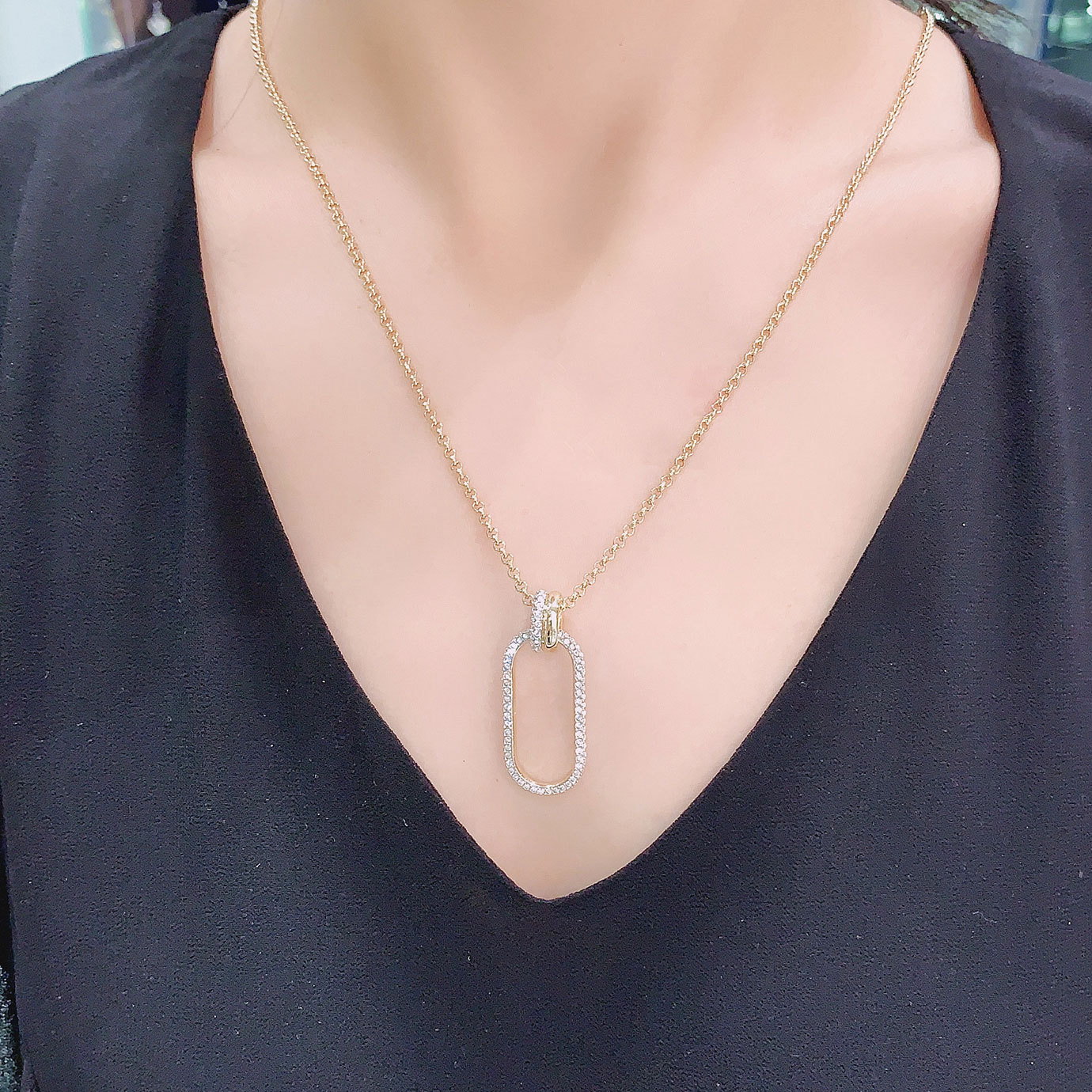 Gold Interlocking Crystal Necklace Woman Clavicle Sweater Chain