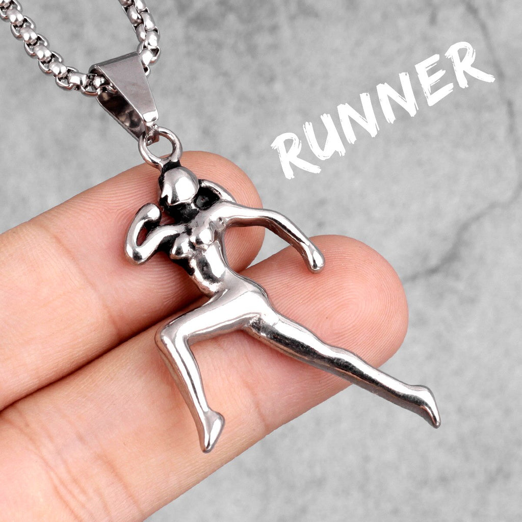 Gold Runner Fitness Bodybuilding Men Necklaces Pendants Chain for Boy Male Stainless Steel Jewelry Creativity Gift