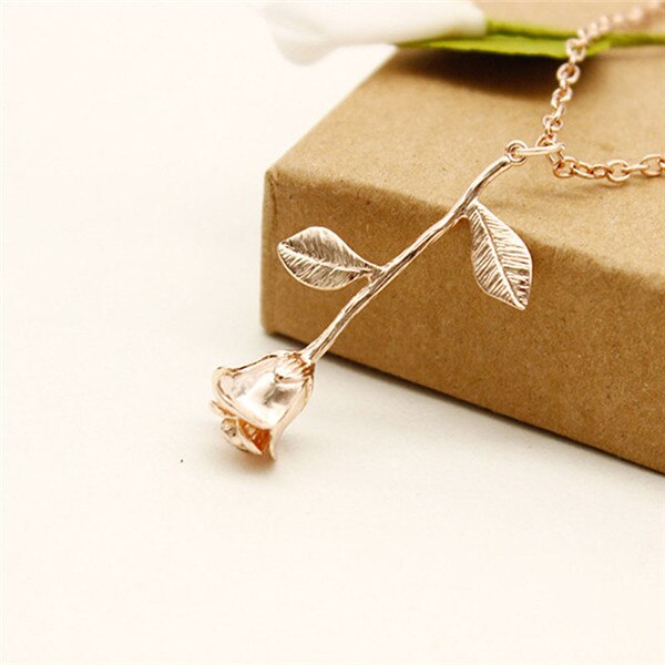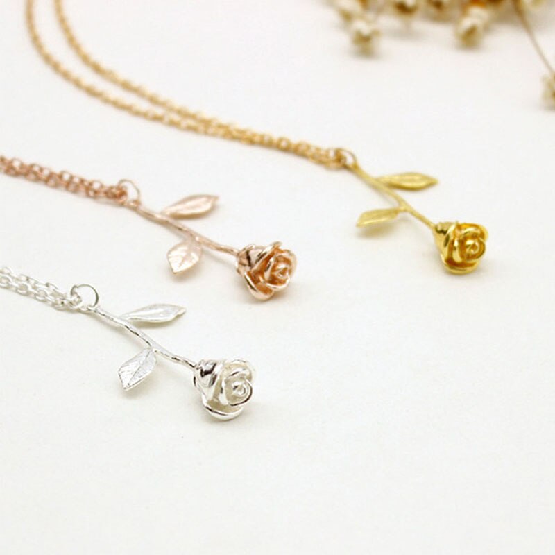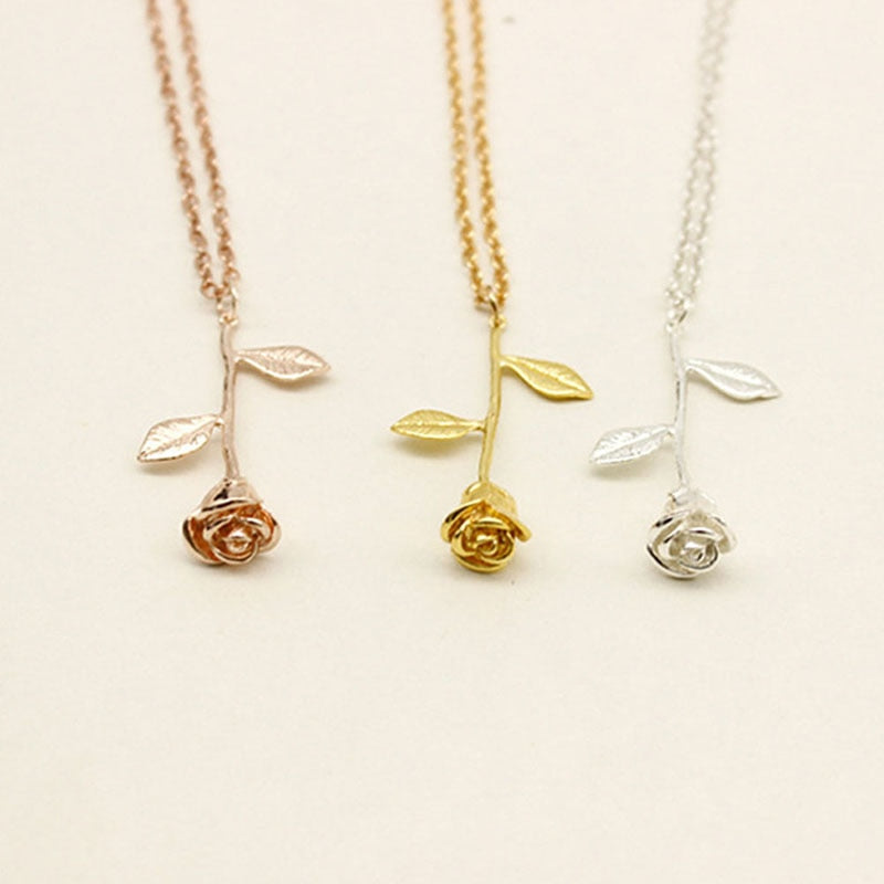 Gold Silver Plated Beauty and the Beast Rose Pendant Necklace Anniversary Jewelry Gift Sale