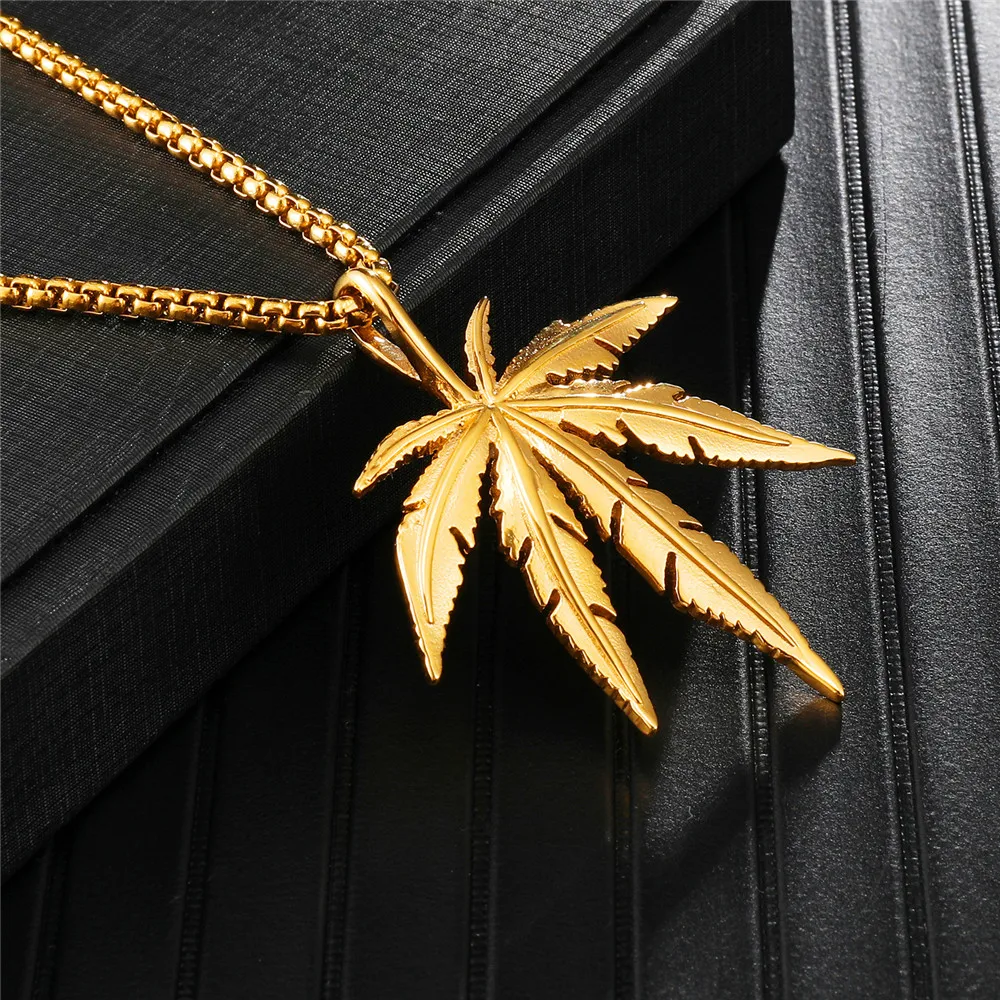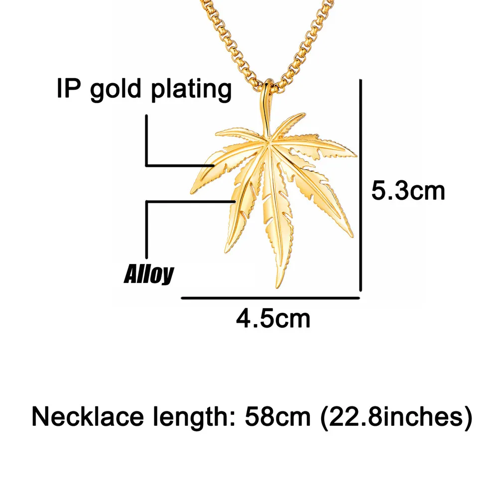 Gold Silver Plated Cannabiss Small Weed Herb Charm Necklace Maple Leaf Pendant Necklace Hip Hop Jewelry