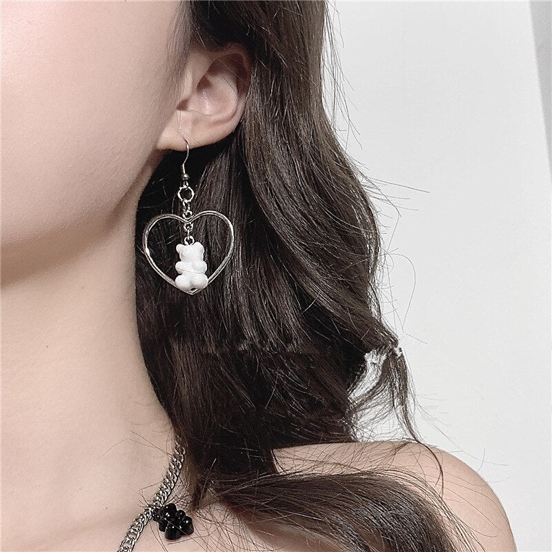 2107147 (1)黑白小熊软糖项链金属爱心果冻熊耳饰可爱