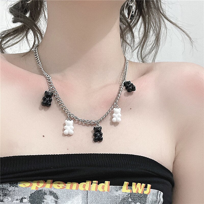 Goth Black White Gummy Bear Choker Necklace for Women Girls Egirl Pendant With Cute Teddy Bear gothic Hip Hop Neck Chain Collar