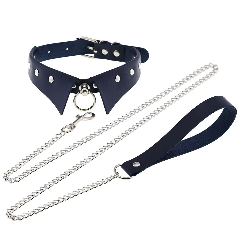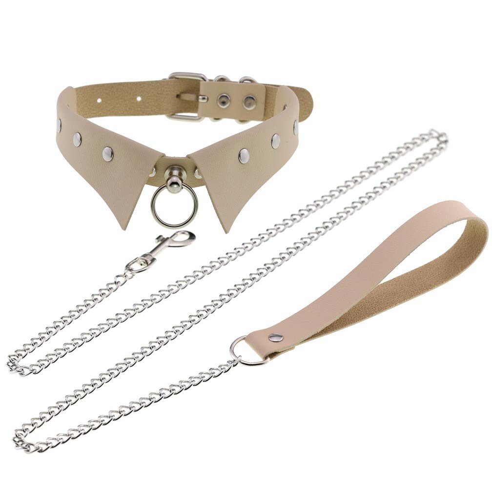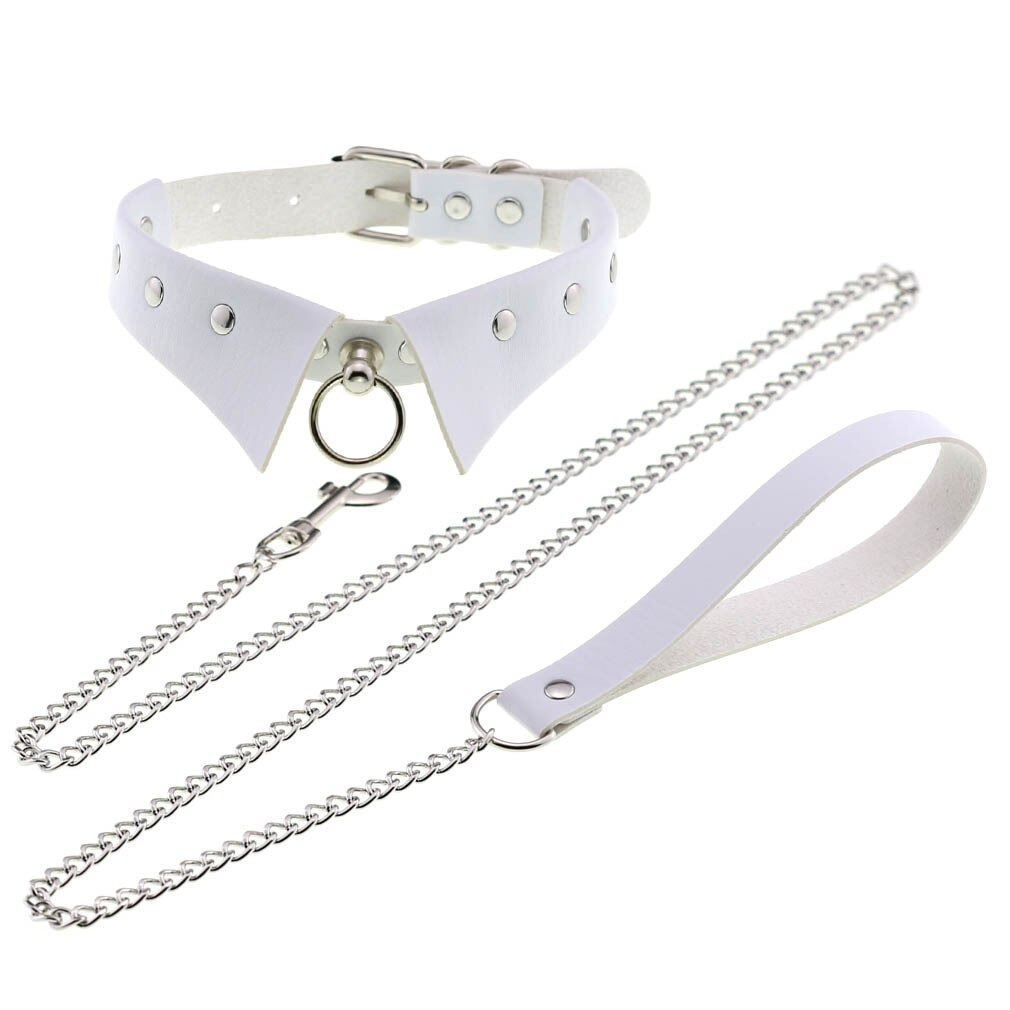 Punk Gothic Leather Collar Traction Rope Chokers Necklace for Women Party Sexy Jewelry Fashion O-shaped Collar PU Traction Belt