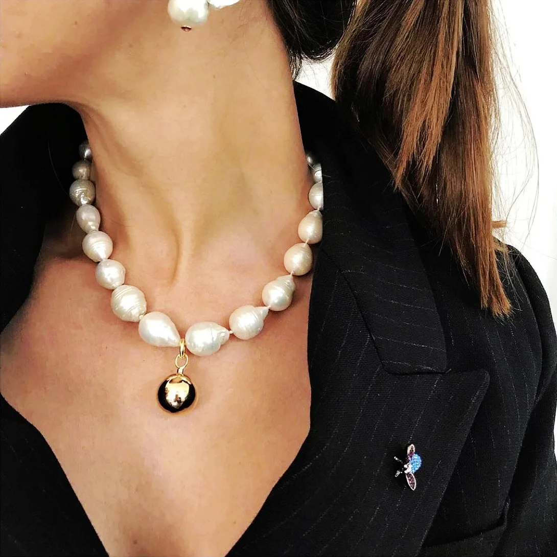 Gothic Big Imitation Pearl Choker Necklace for Women Girls Metal Pendant Hip Hop Irregular Pearl Chain Necklace Women Jewelry