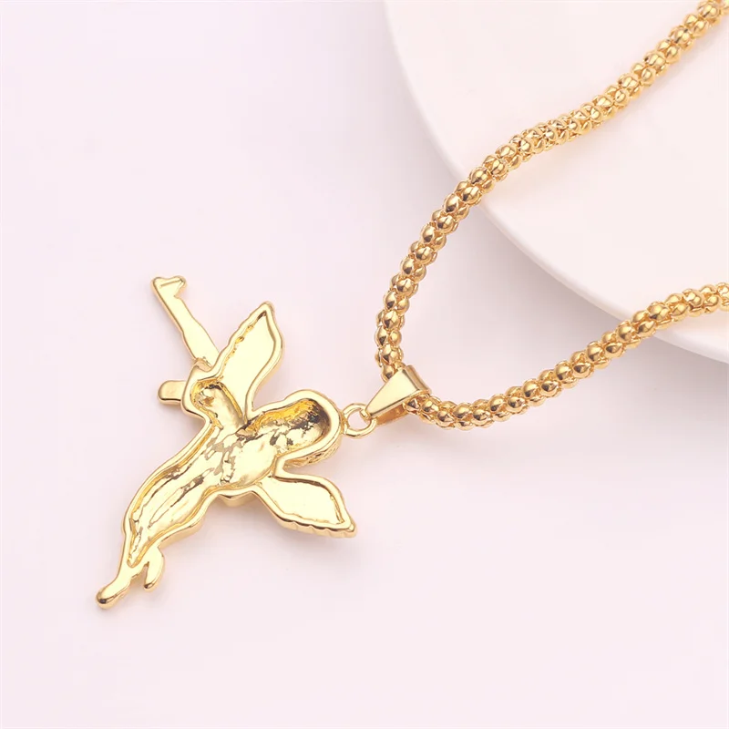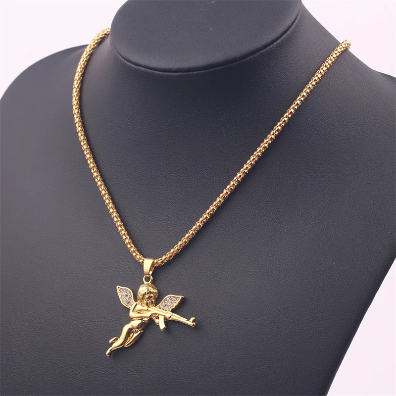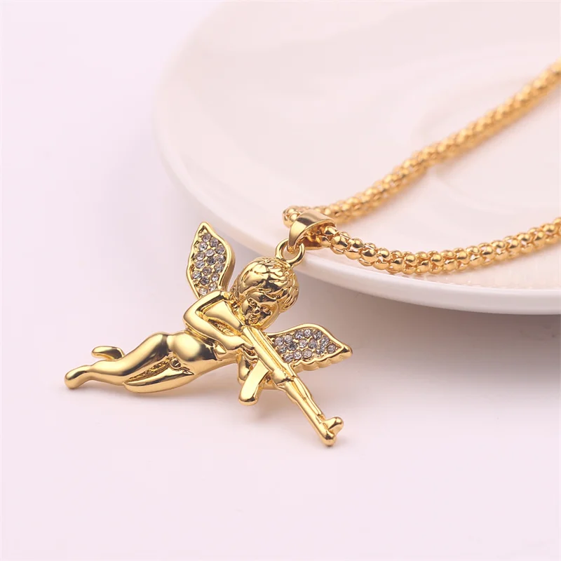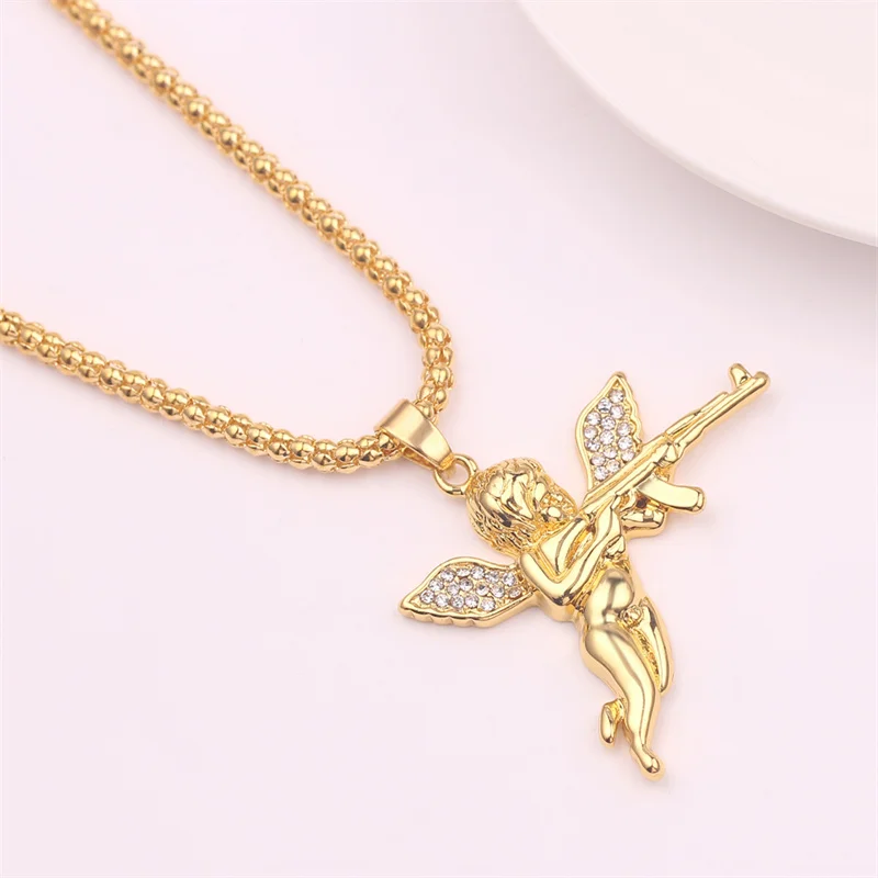 Gothic Creative Design Angel Cupid Gun Pendant Necklace Women's Rhinestone Chain Necklace Romantic Couple Memorial Jewelry