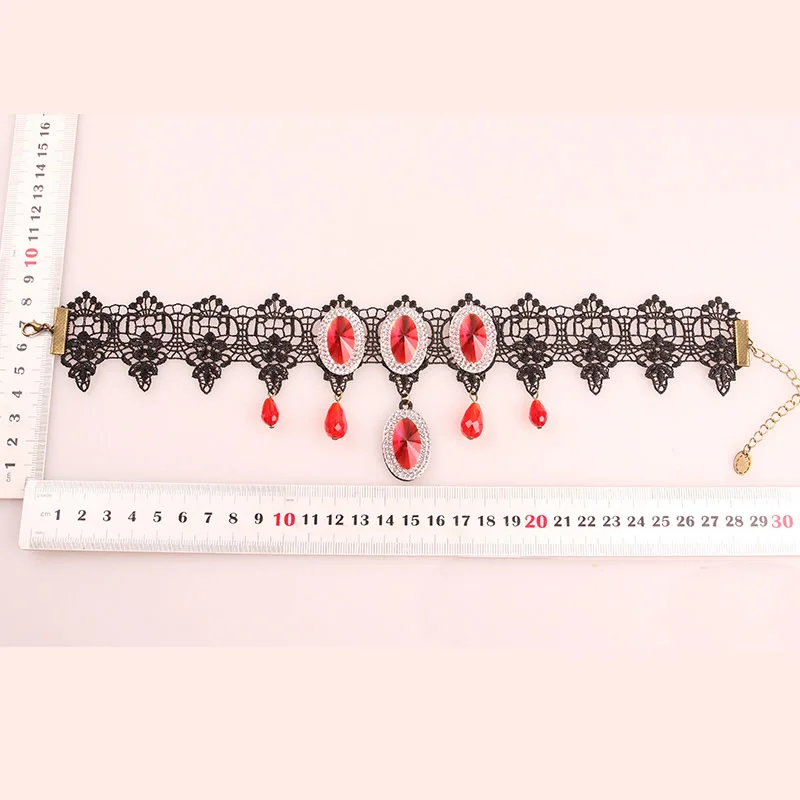Gothic Elegant Women Lace Choker Necklace Multicolor gemstone pendant Retro Style Handmade Necklace