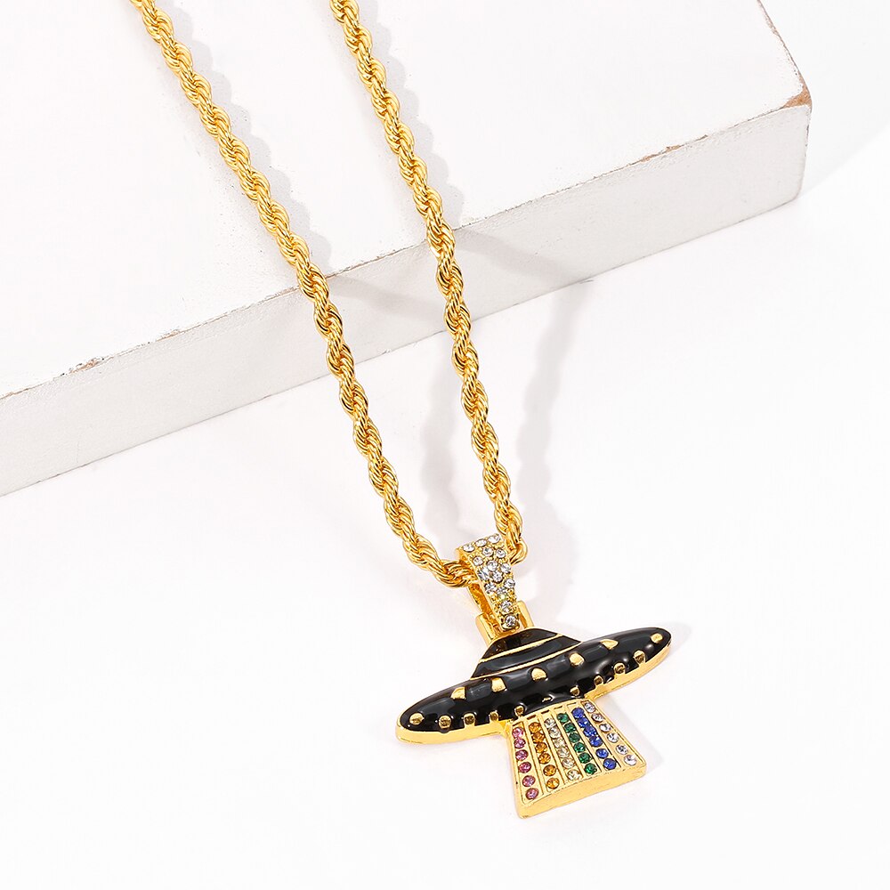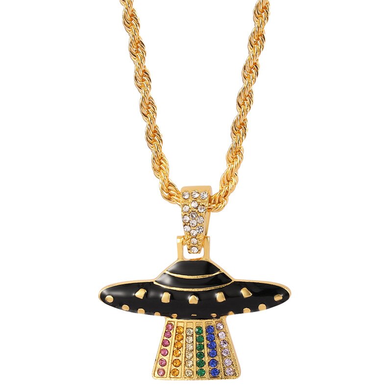 Gothic Iced Out UFO Pendant & Necklace Micro Paved Cubic Zircon Men's Hip Hop Jewelry For Women Jewellery Gift