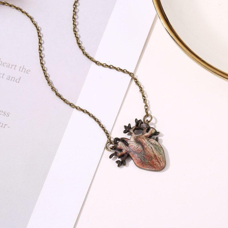Gothic vinage ANATOMICAL HEART CHARM NECKLACE Love Heart Jewelry Human Heart Organ Necklace,