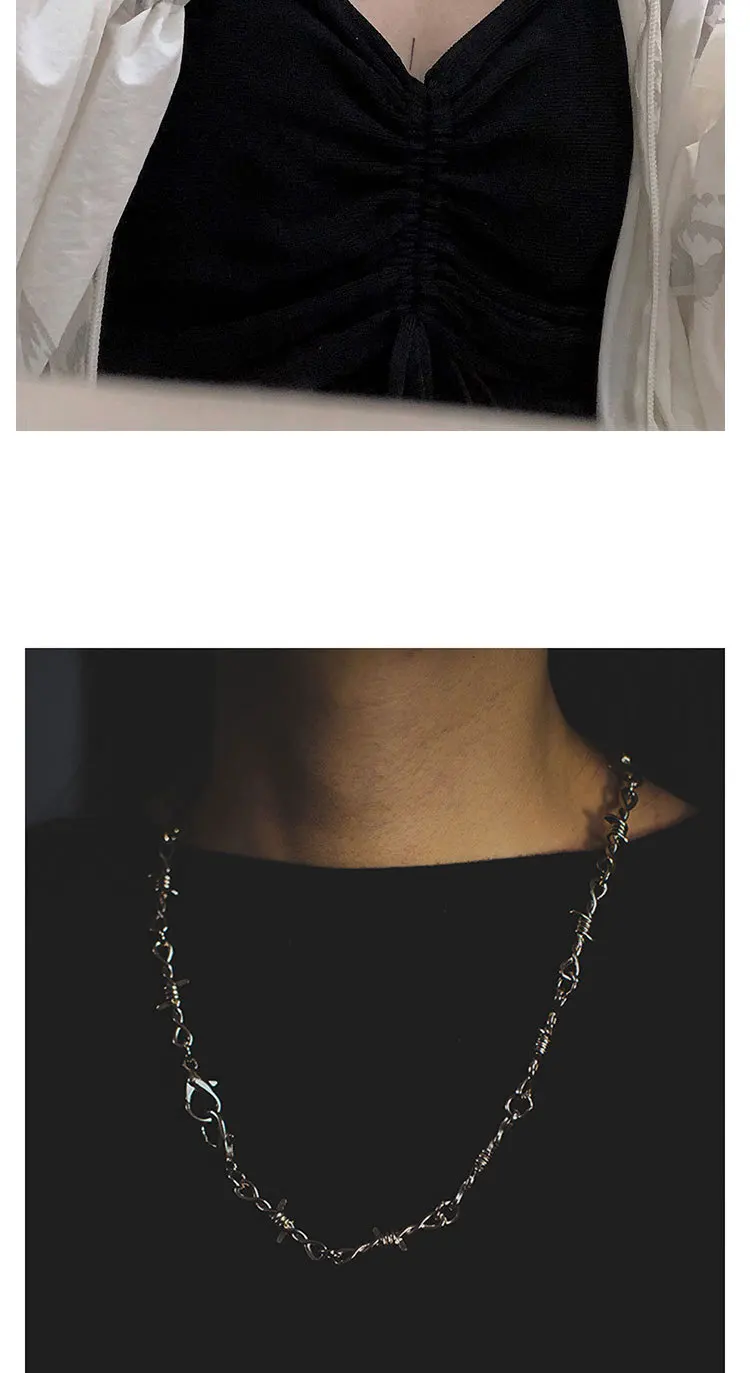 Gothic Wire Brambles Iron Choker Necklace Women Hip-hop Punk Blade Barbed Wire Little Thorns Chain Chokers Men Party Gift B104