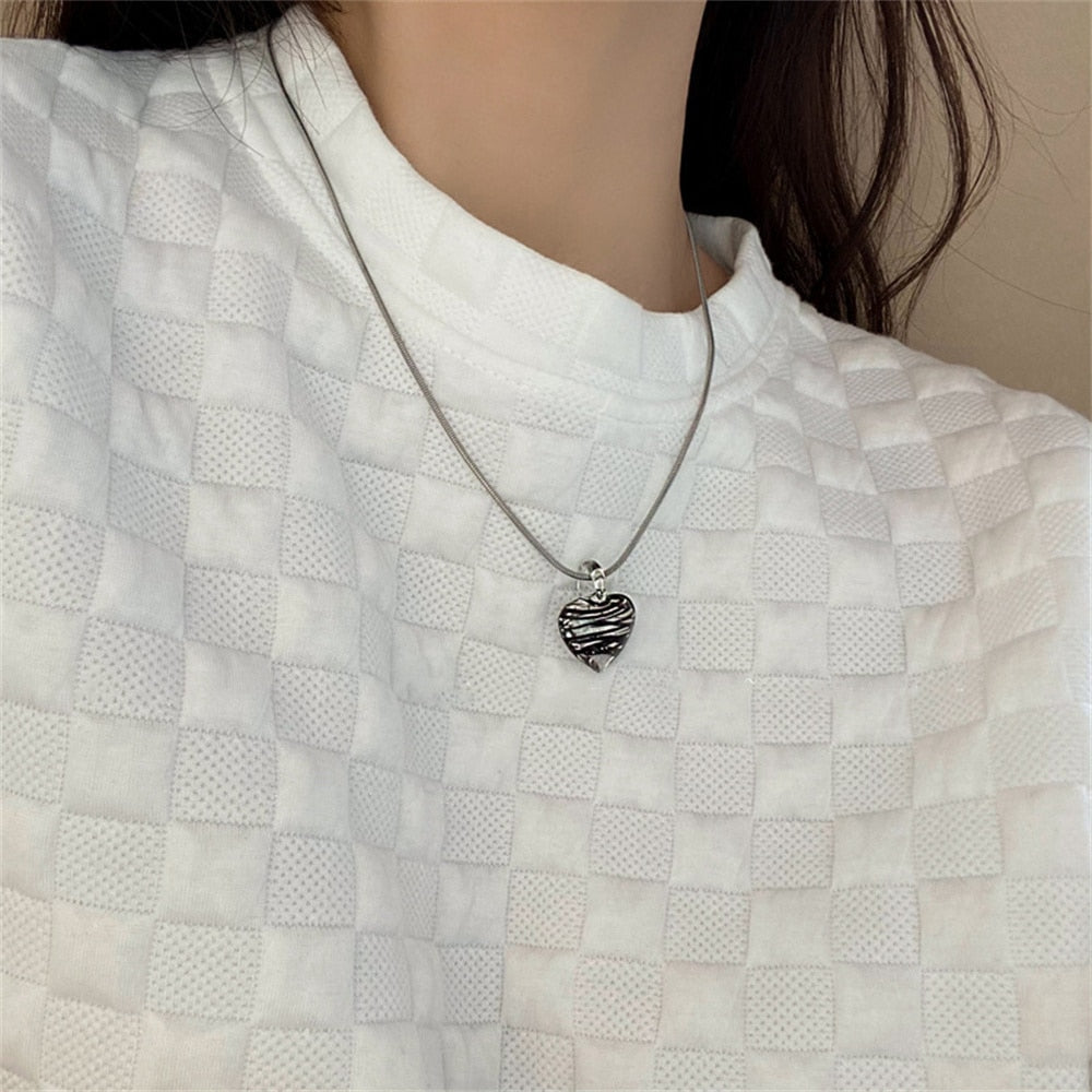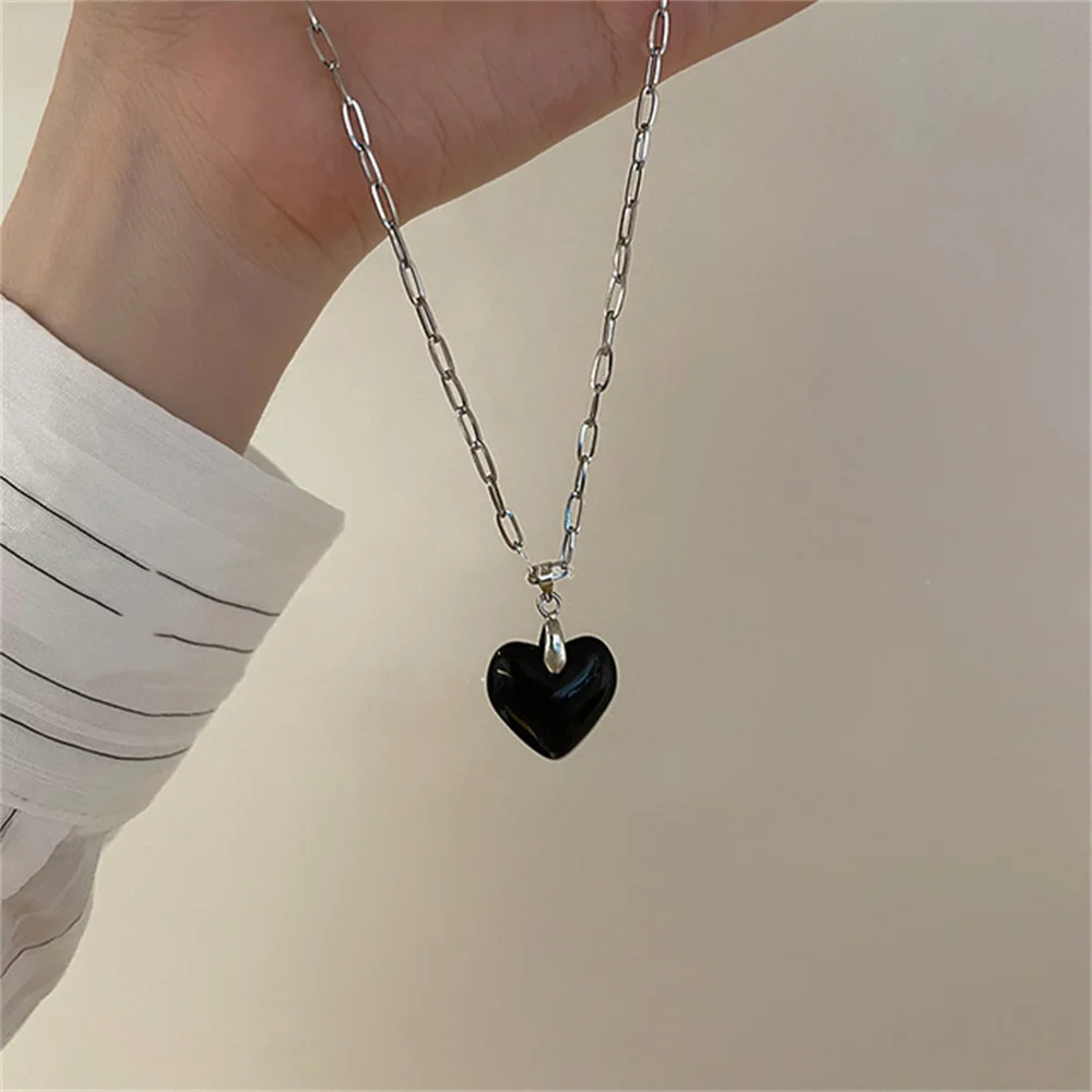 Green Black Zebra-Stripe Glass Heart Pendant Titanium Steel Chain Necklaces for Women Chokers Unusual Necklace Aesthetic Jewelry