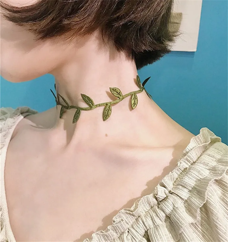Green Leaf Necklace Clavicle Chain Korean Style Neck Jewelry Neckband Collar Party Styling Supplies