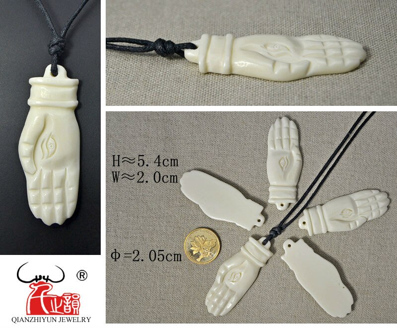 GX045 Primitive totem yak bone amulet jewelry handmade-carved Hand of God pendant hand of Fatima necklace Hamsa Choker