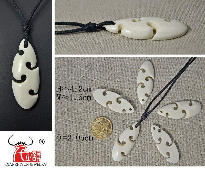 GX088 Zealand Maori handmade jewelry men sea waves necklace women yak bone pendant necklaces of surfing