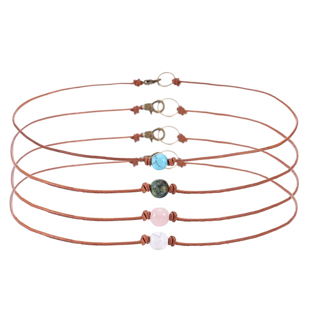 Handamde Leather Necklaces Semi Precious Stone Short Chokers Necklace Women Statement Necklaces Jewelry