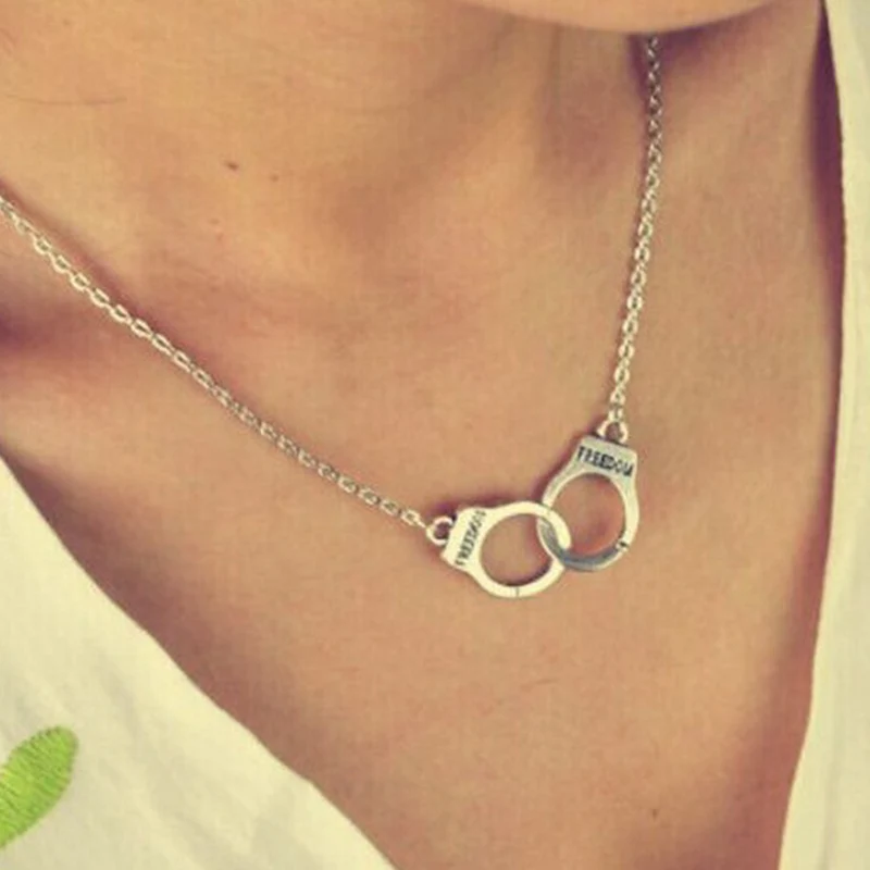 Handcuff Pendant Necklace for Women Men Steampunk Chain Jewelry Lover's Collares Valentine's Day Gifts