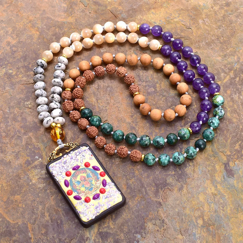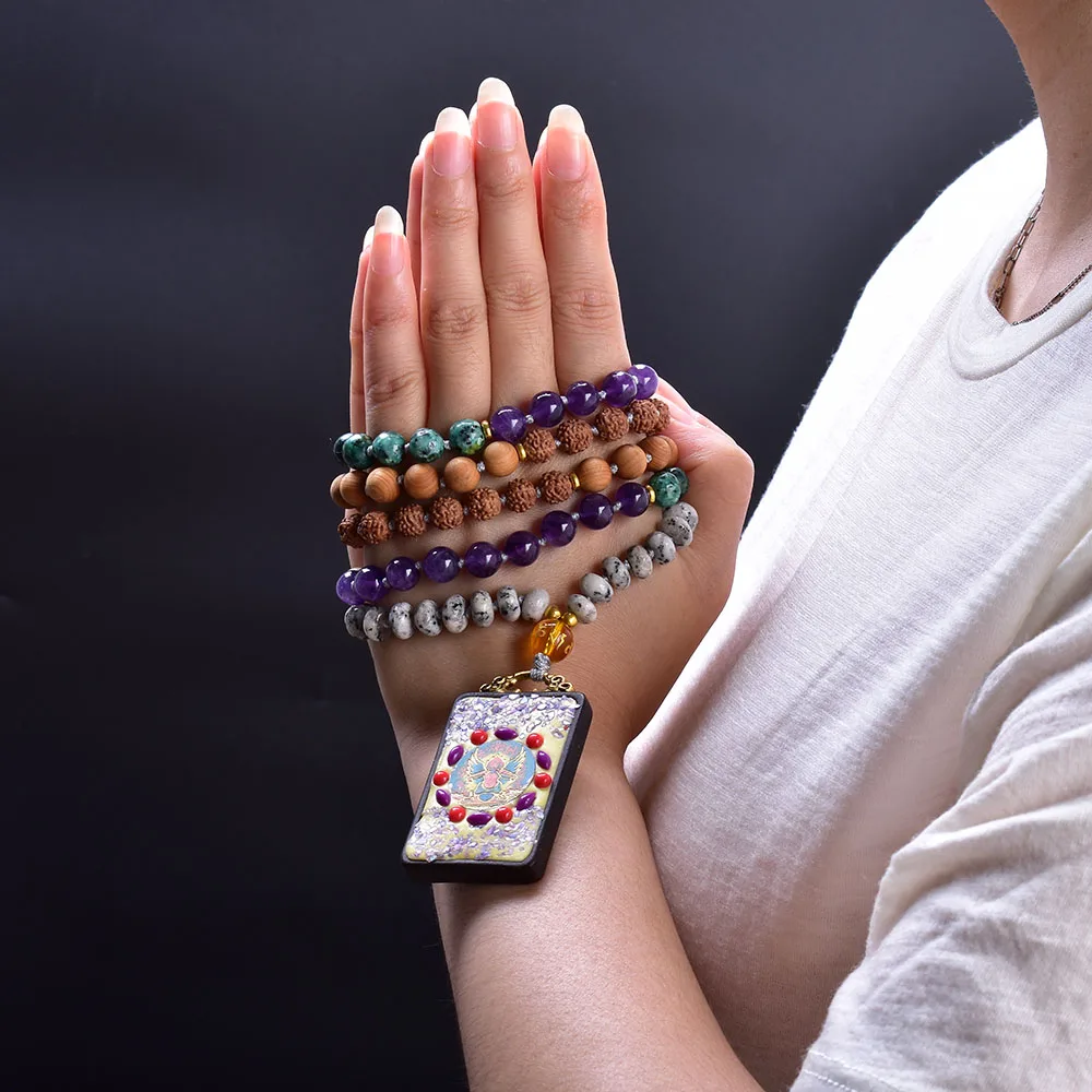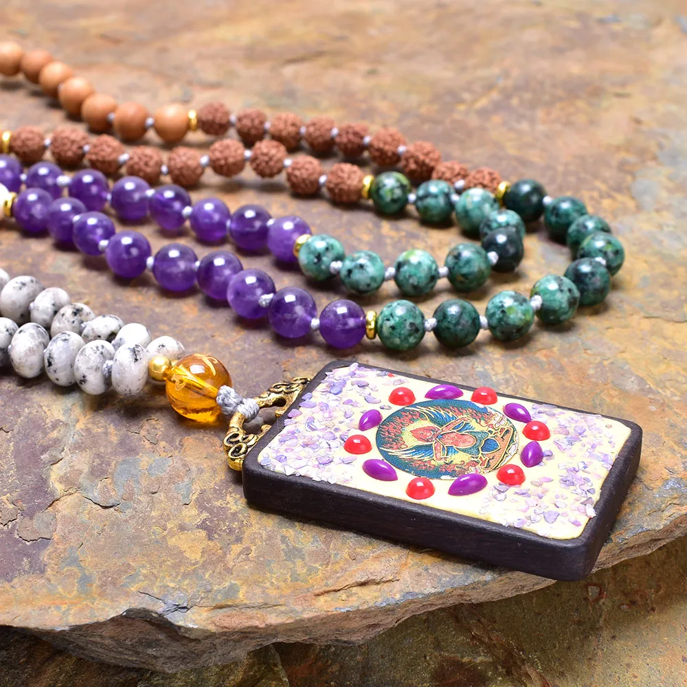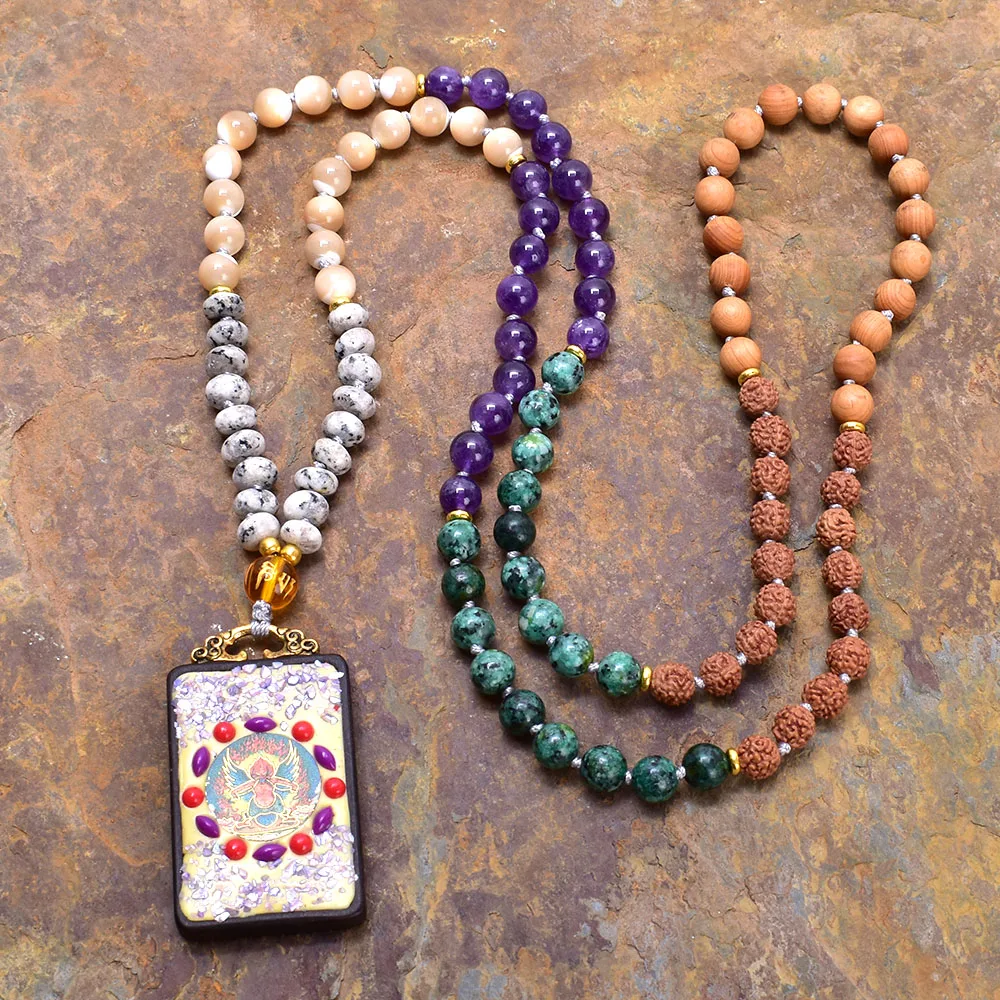 Handmade 8mm Natural Stone Beaded Knotted Japamala Long Necklace for Women 108 Mala Bead Necklace Yoga Meditation Zen Jewelry