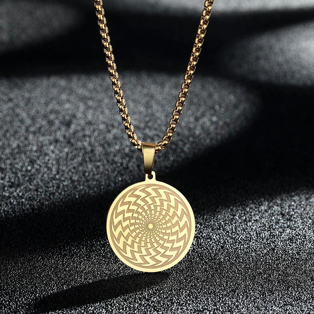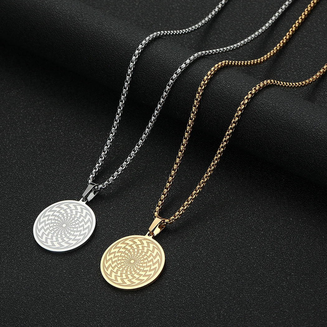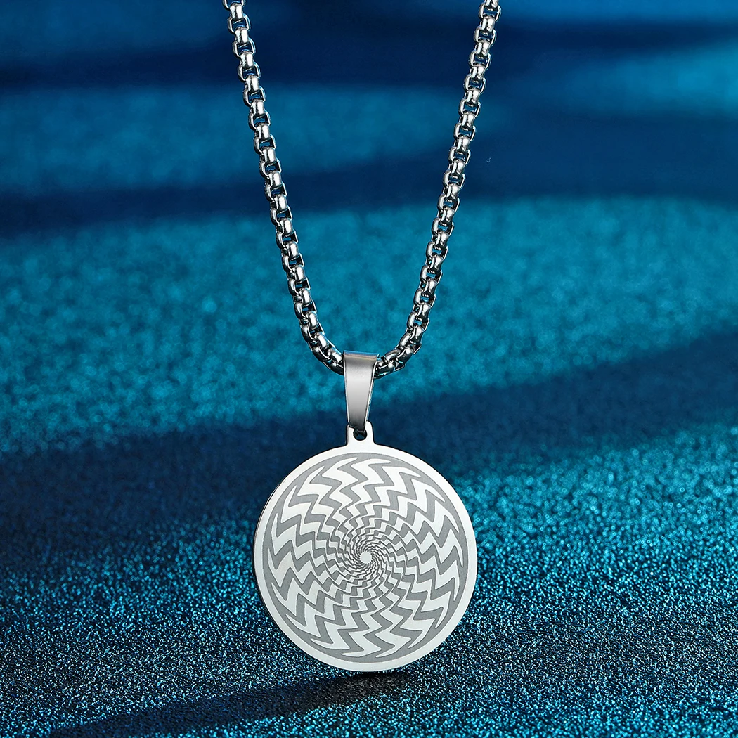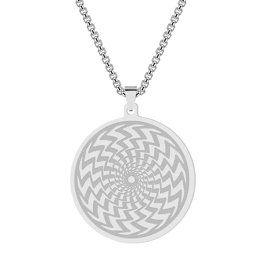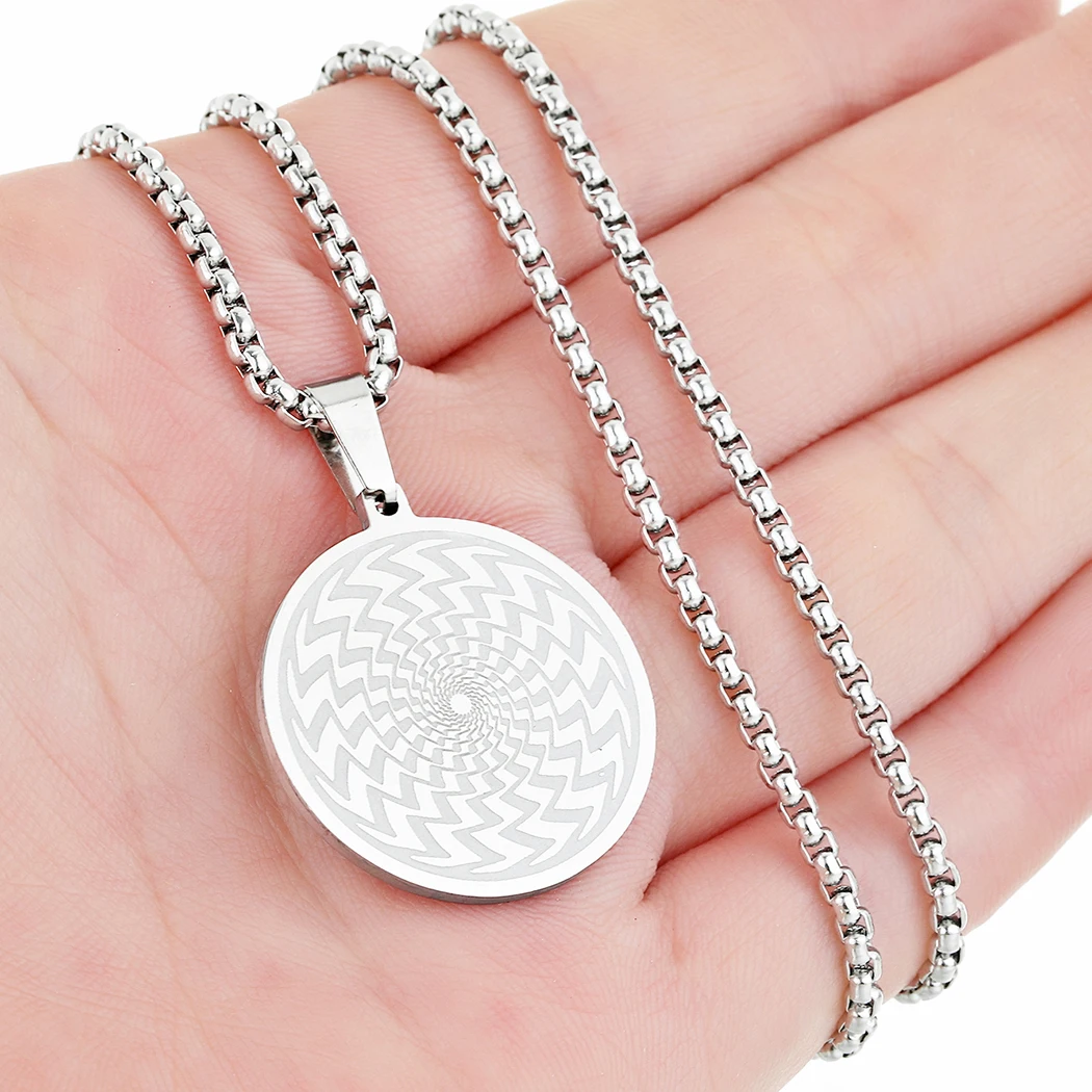 Handmade Round Circle Illusion Pendant Necklace Men Women Silver Stainless Steel Jewelry Friendship Necklace