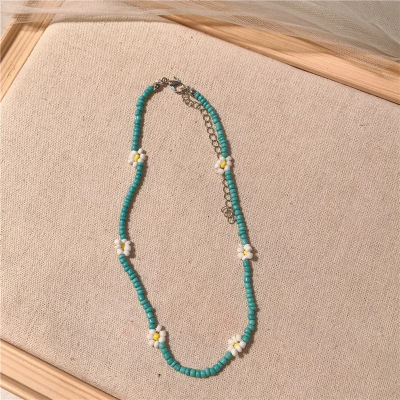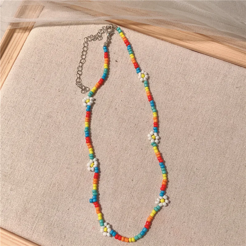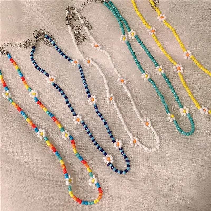 HangZhi 2021 5 pcs/set Daisy Flower Colorful Beads Clavicle Choker Necklace for Women Girls Spring Summer Jewelry