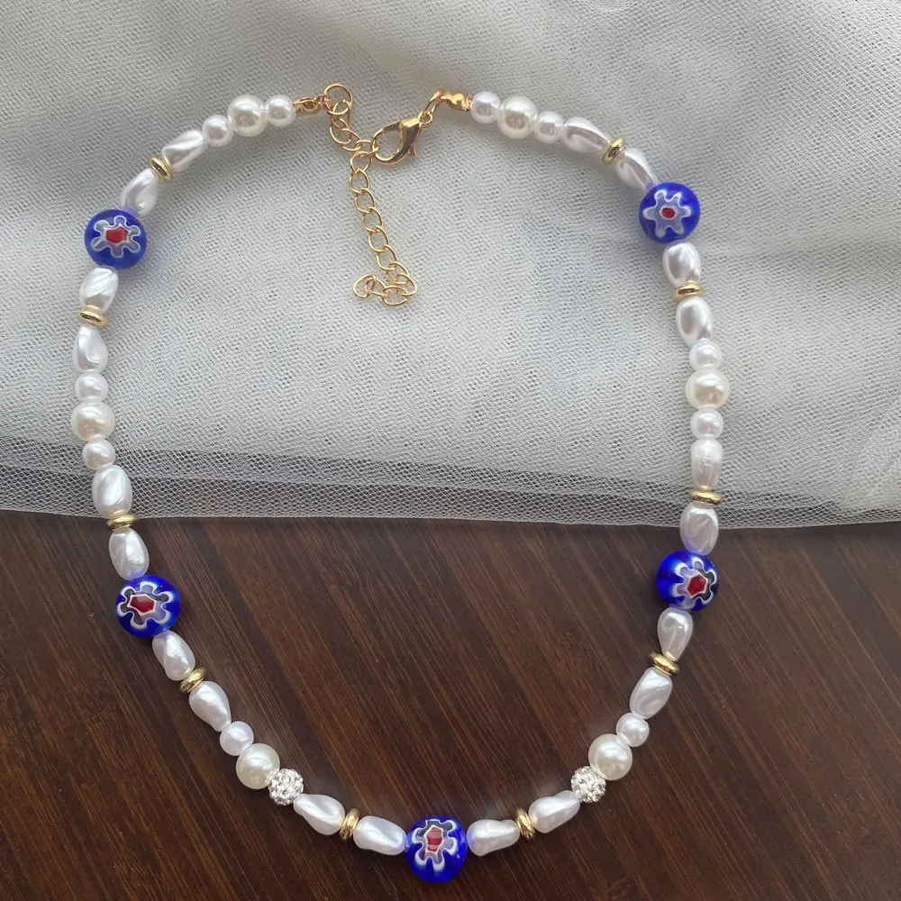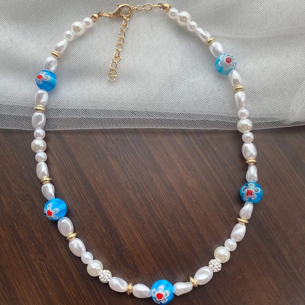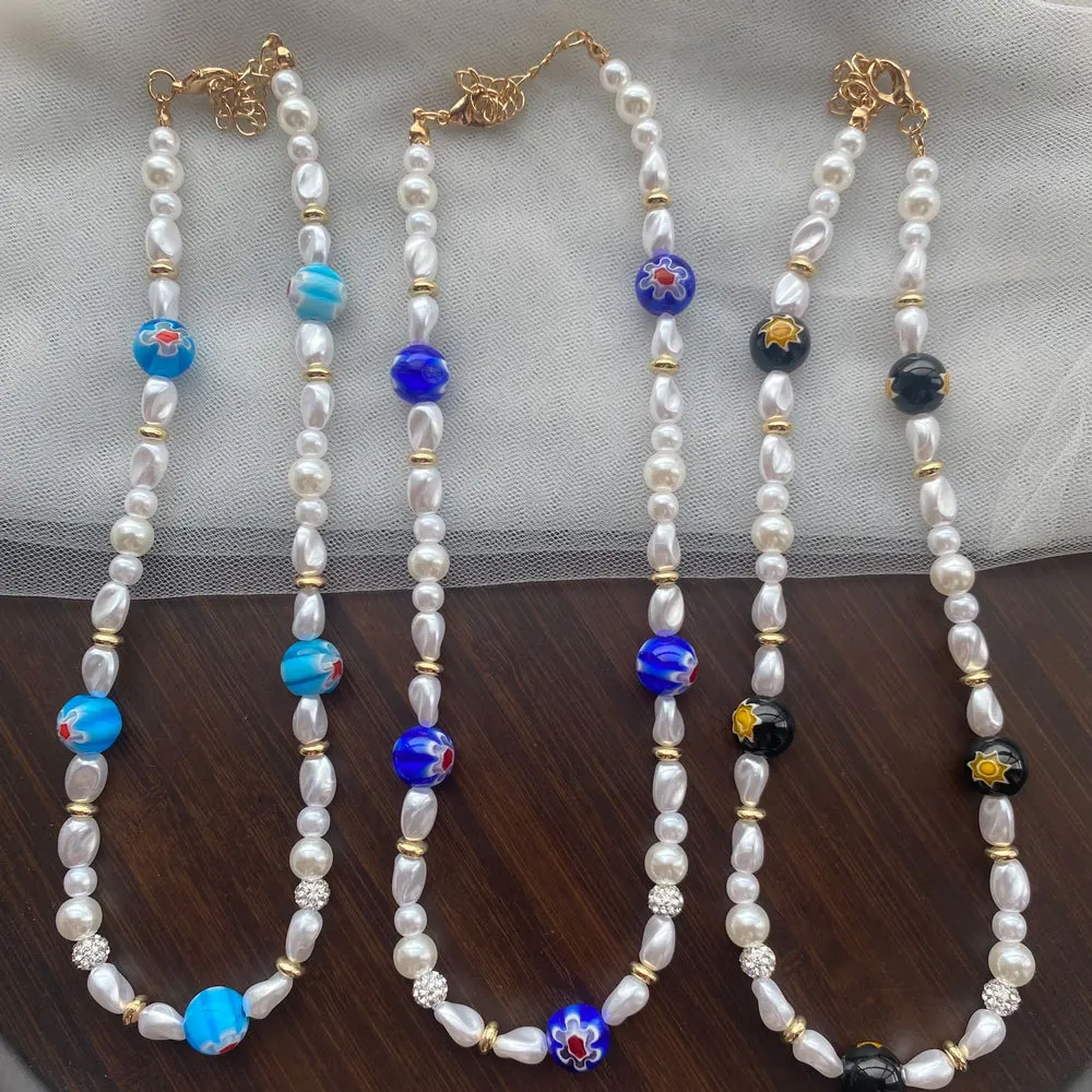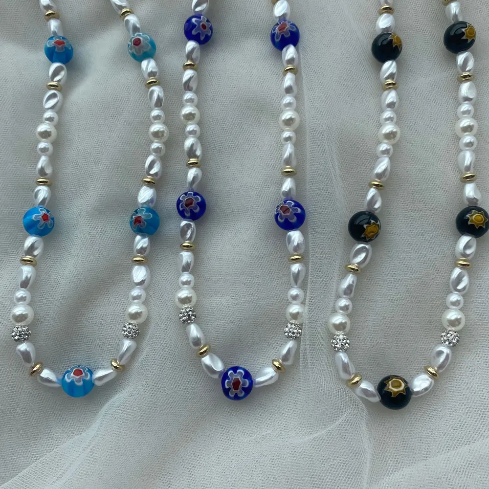 HangZhi 2021 Colorful Glaze Daisy Flower Pearl Necklace Metal Beads Choker Chain for Women Girls Party Jewelry Gifts