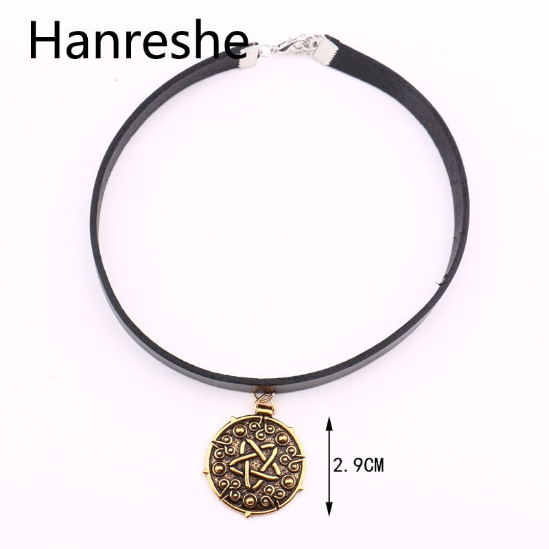 HANRESHE Witcher 3 Medallion 32cm+5cm Leather Choker Necklace the Wild Hunt Game Cosplay Jewelry Gothic Gold Pendant Women