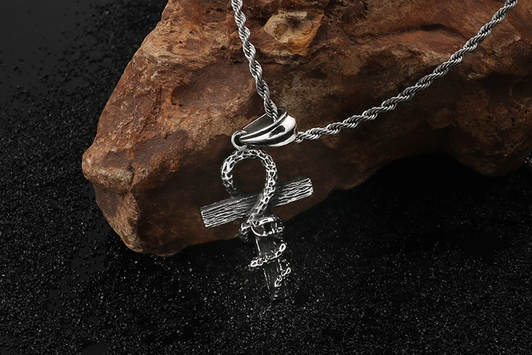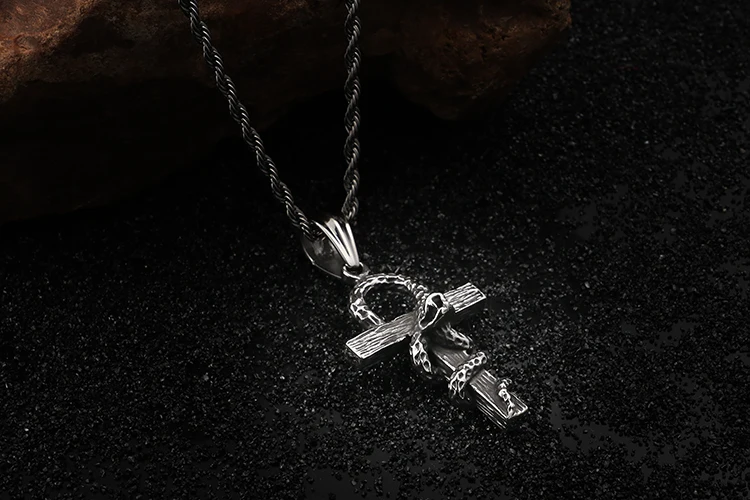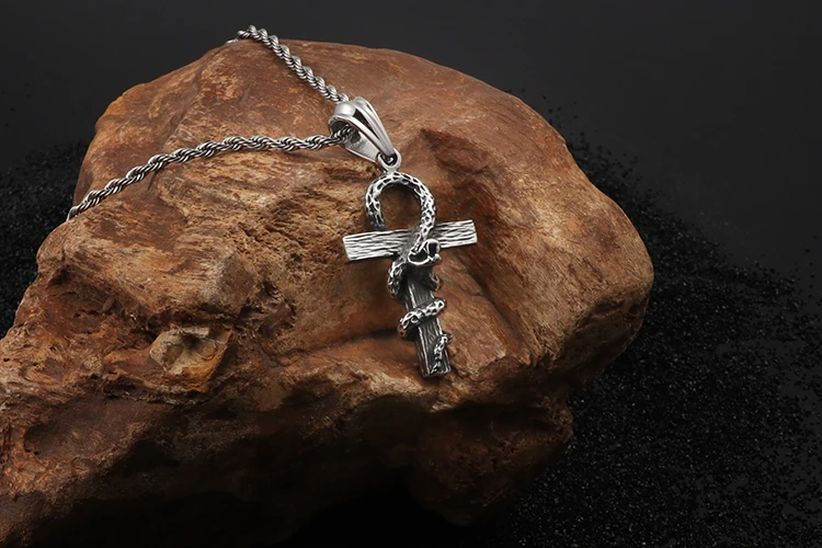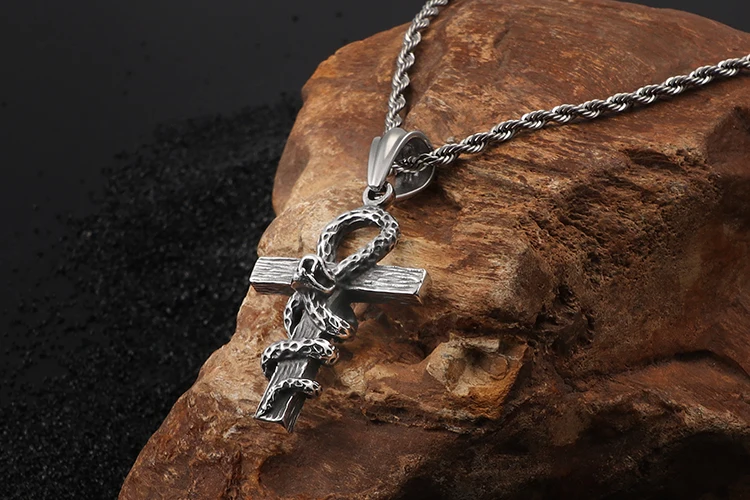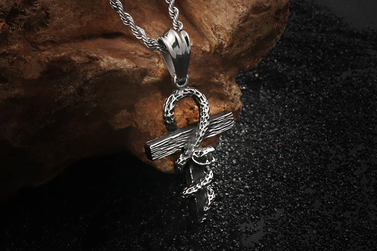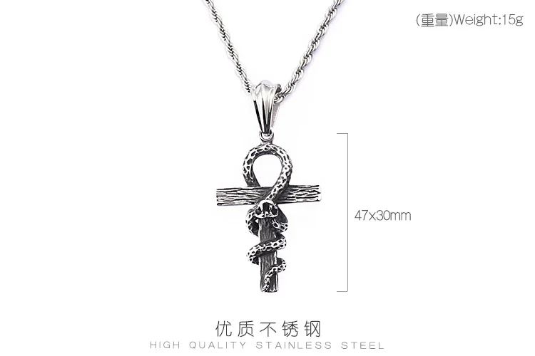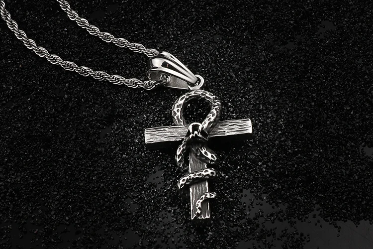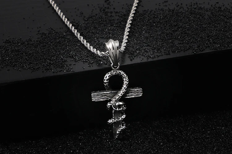 HaoYi Vintage Snake Shape Egypt Cruz Pendant Necklace Gothic 316L Stainless Steel Punk Men's Jewelry
