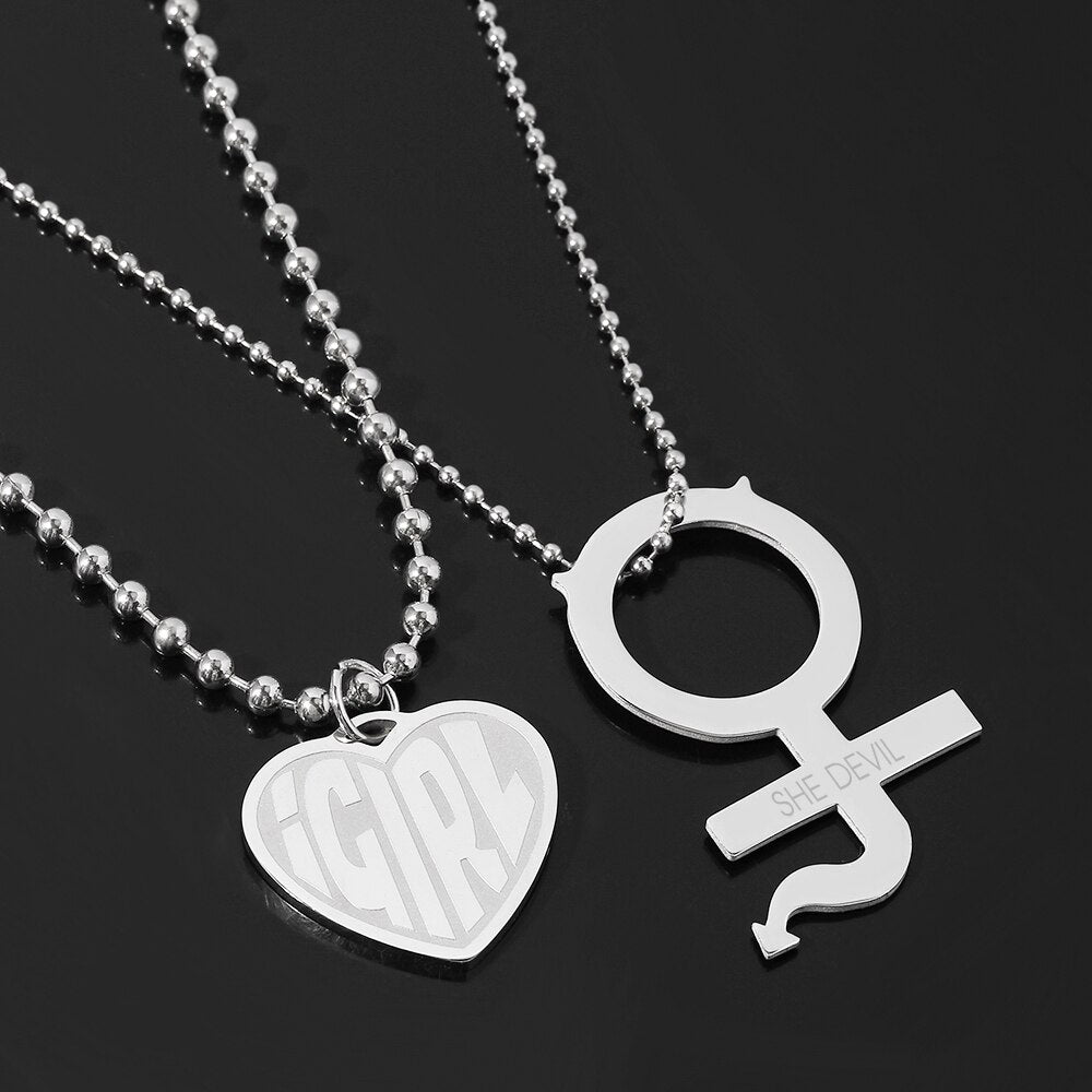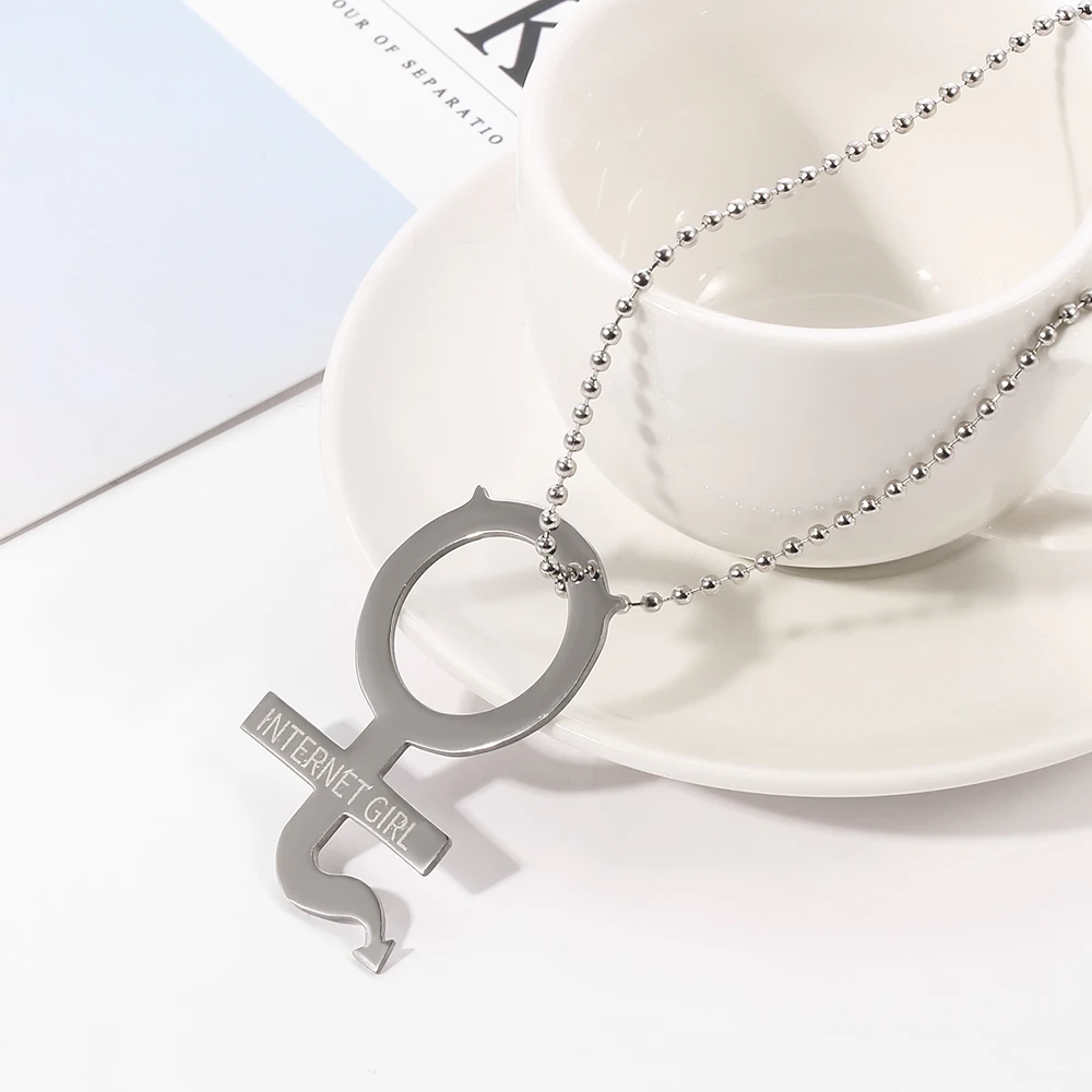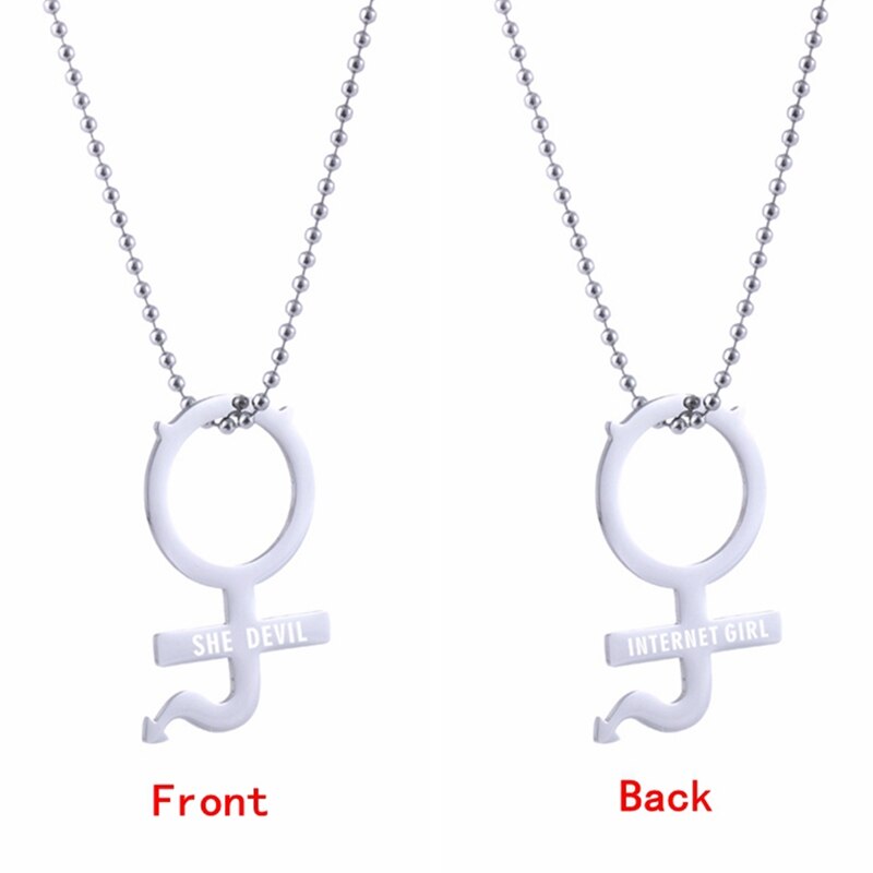 Harajuku INTERNET IGIRL letter necklace Punk Cat shape Pendant necklace Personality girl SHE DEVIL stainless steel Jewellery