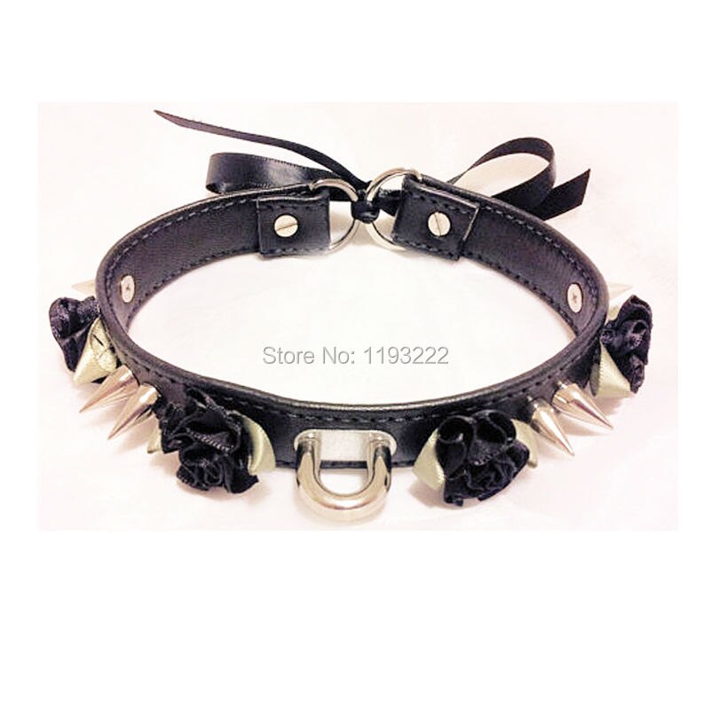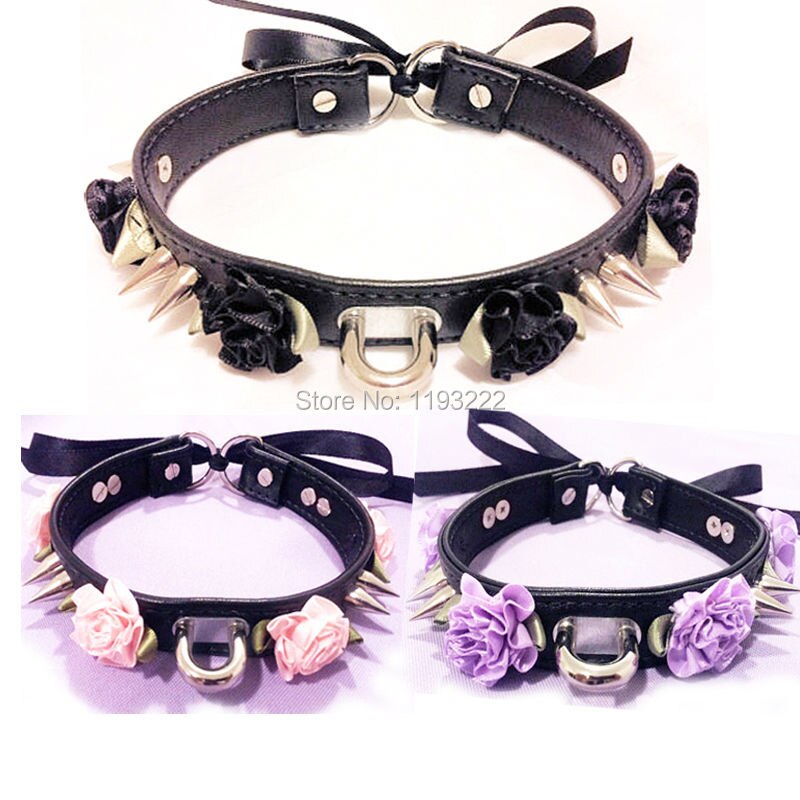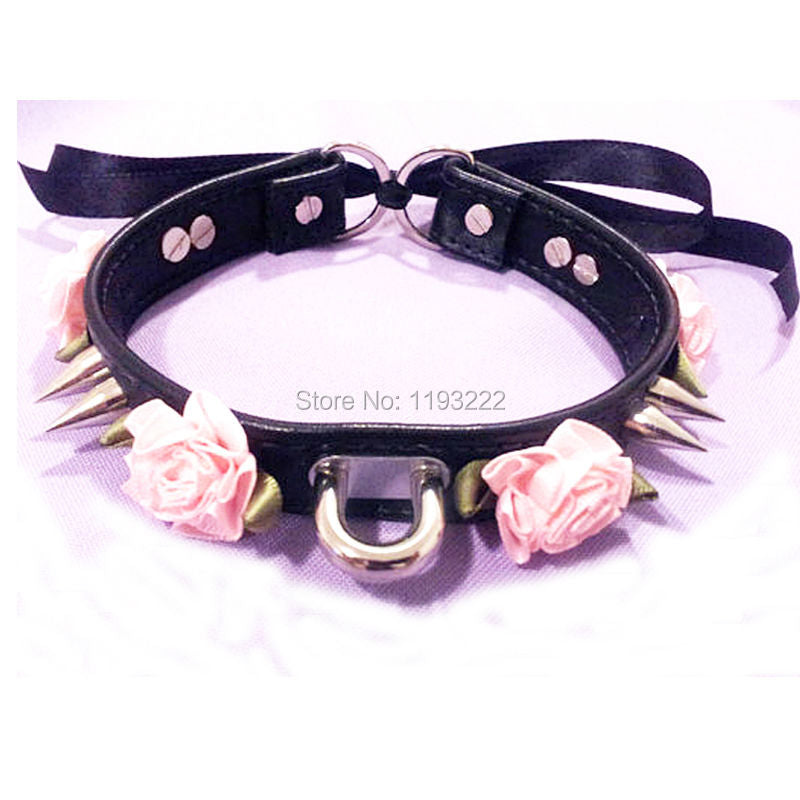 Harajuku Kawaii Punk Rock Flower Spikes Leather Collar Double Spiked Lace Up Choker Colalr Necklace