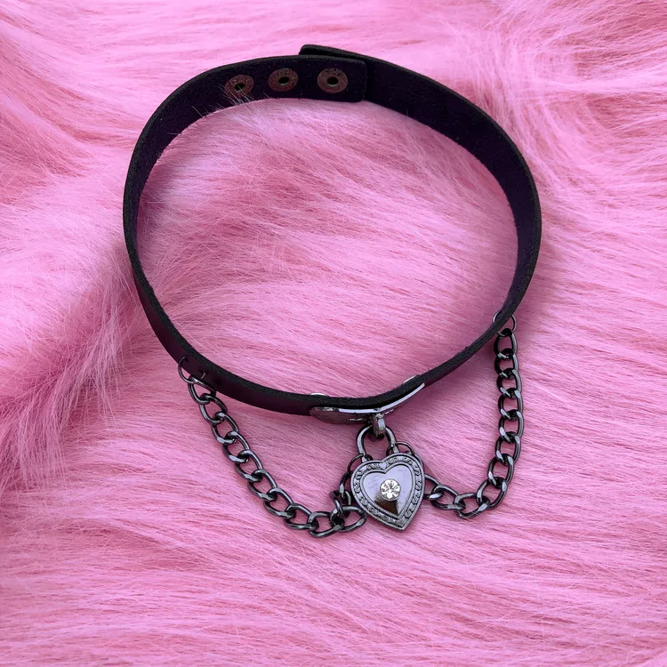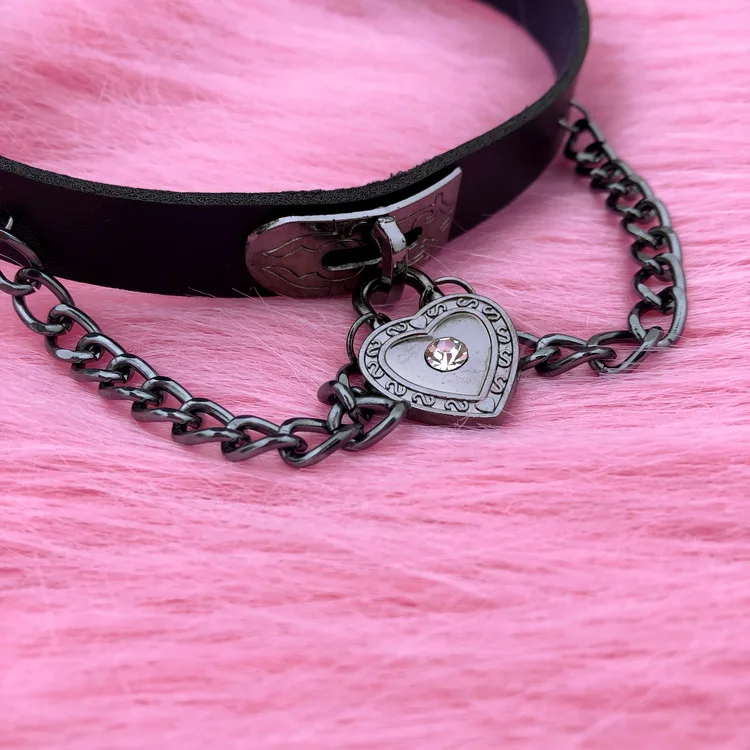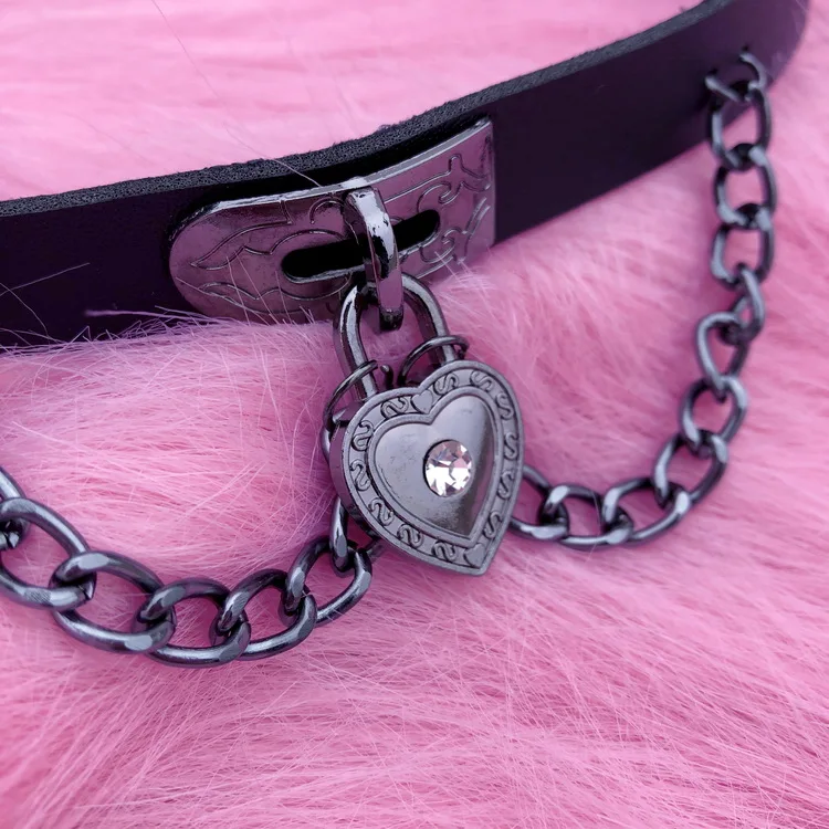 Heart Chains Choker Necklace Women Jewelry Punk Heart Dangle Pendant PU Leather Neck Collar Anime Hip Hop Ins Jewelry