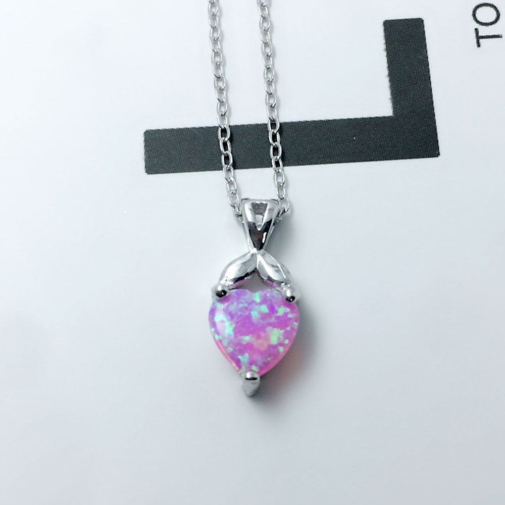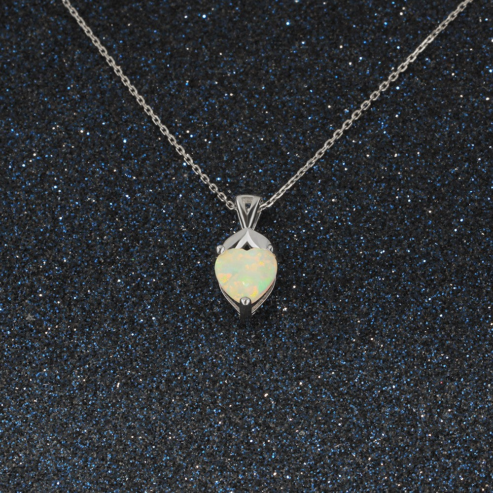Heart Shape White Fire Opal Pendant Necklace 925 Sterling Silver Romantic Wedding Fine Jewelry Best Gift For Wife(Lam Hub Fong)
