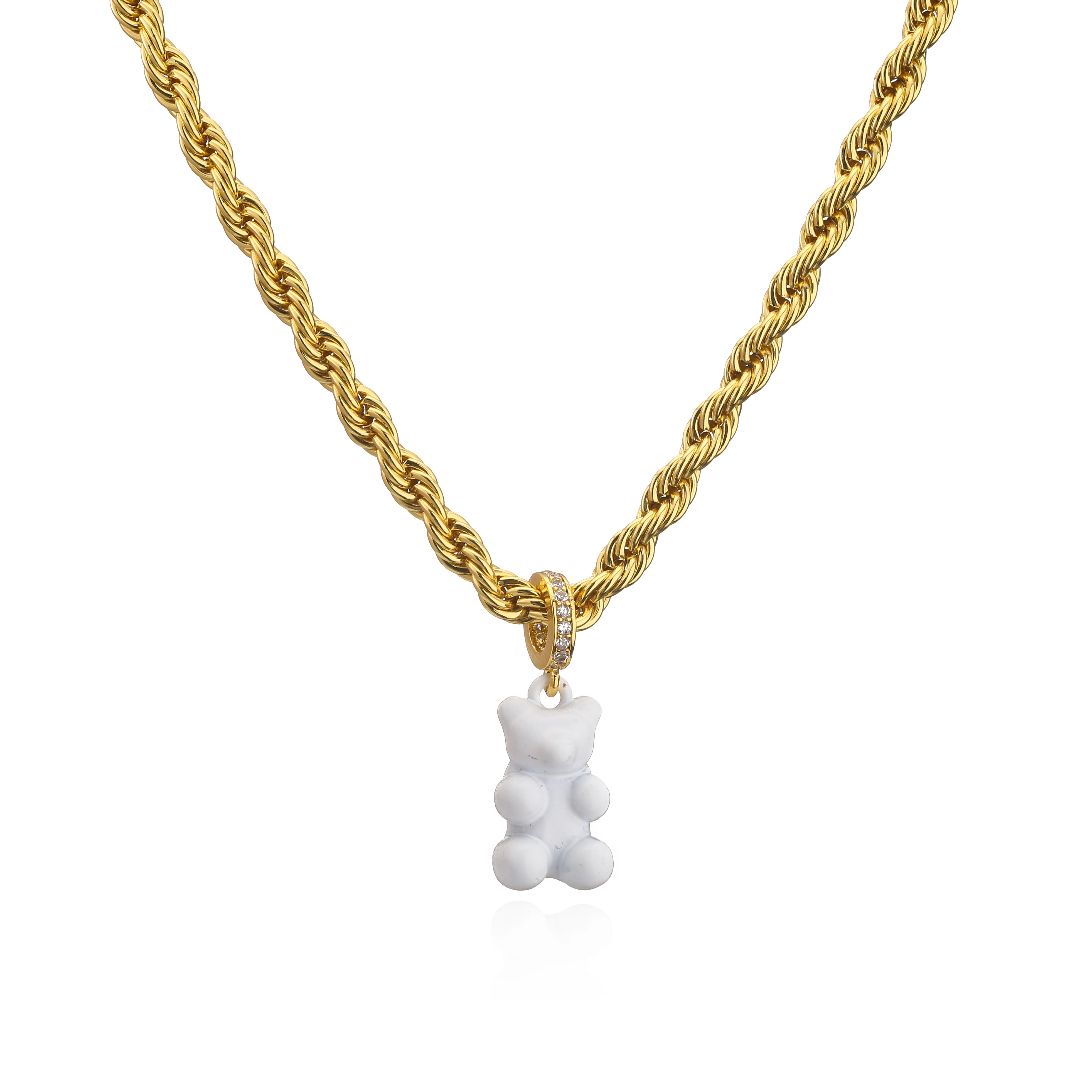 HECHENG,Gummy Bear Stainless Steel Chain Necklace,Candy Color Pendant Necklace for Women Girls,Handmade Jewelry