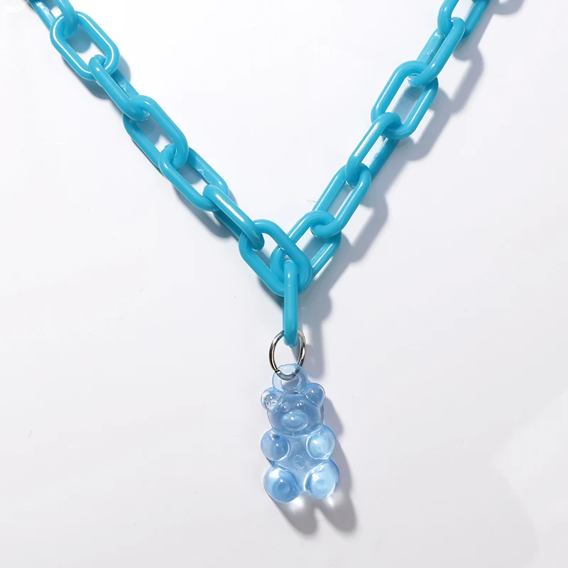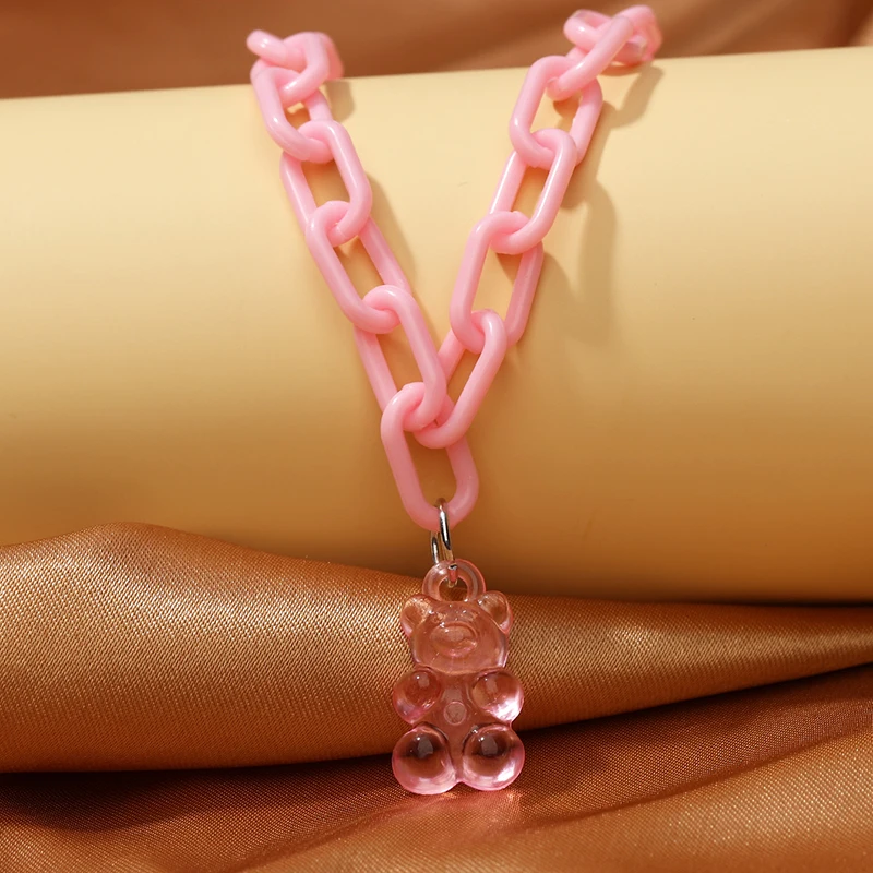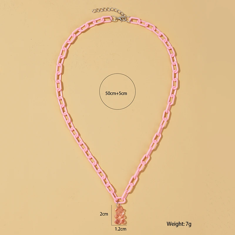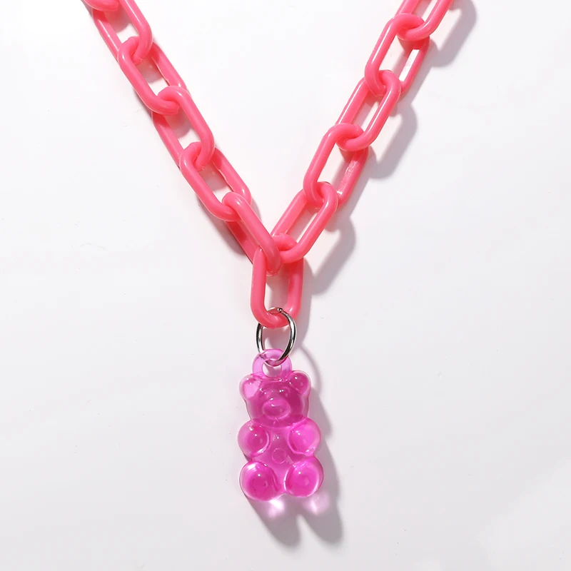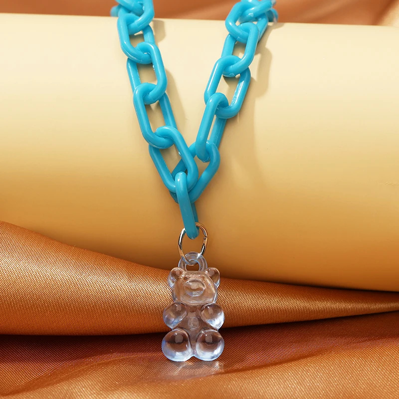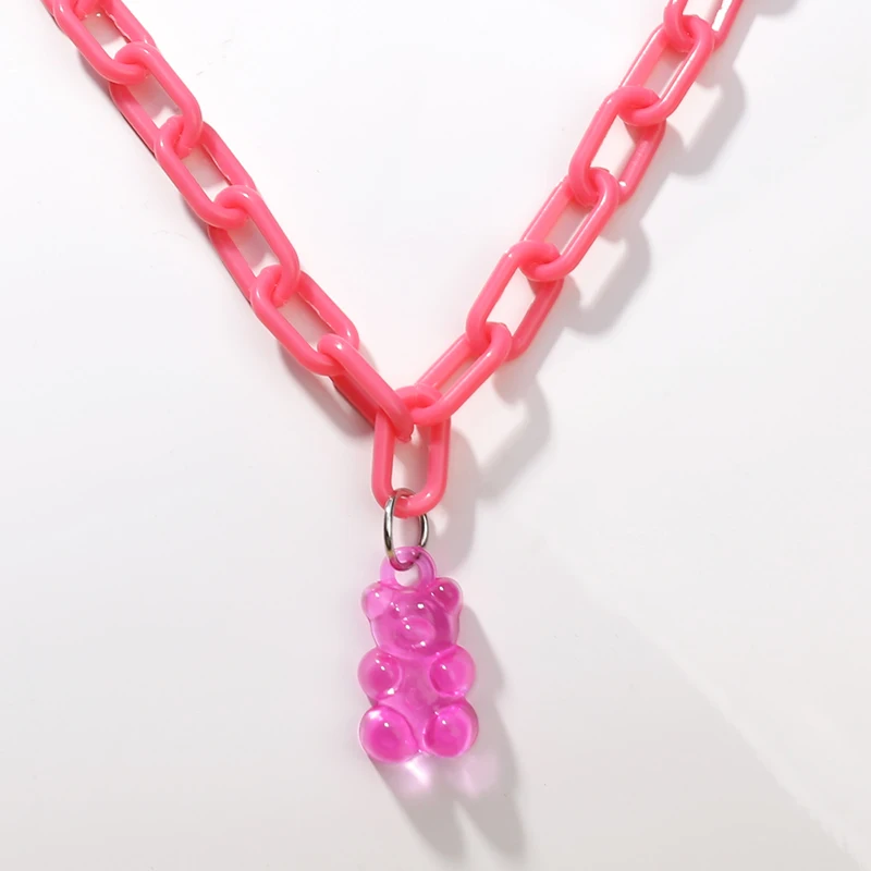 Hesiod 2022 Candy Color Mini Bear Necklace for Women Girl Christmas Gifts Cartoon Pendants Necklaces Birthday Jewelry Gifts