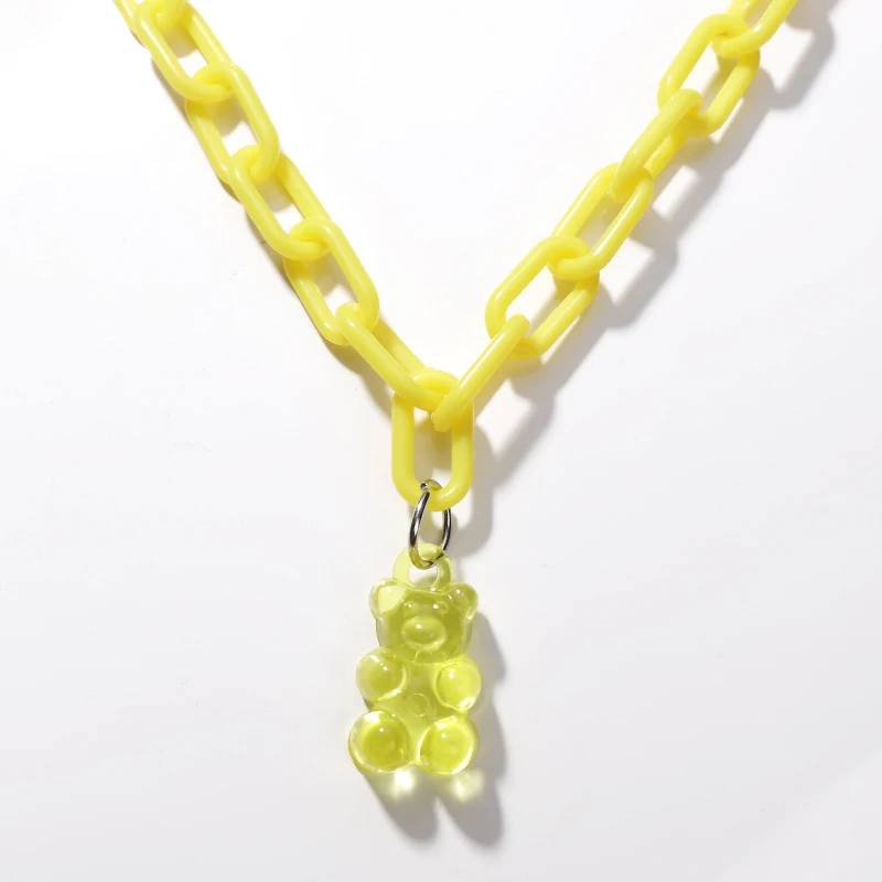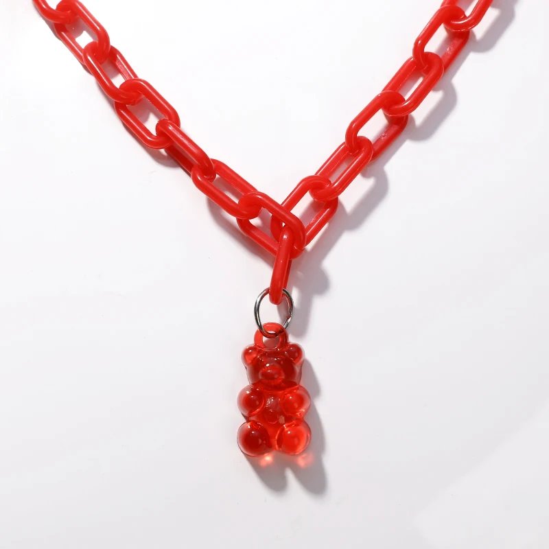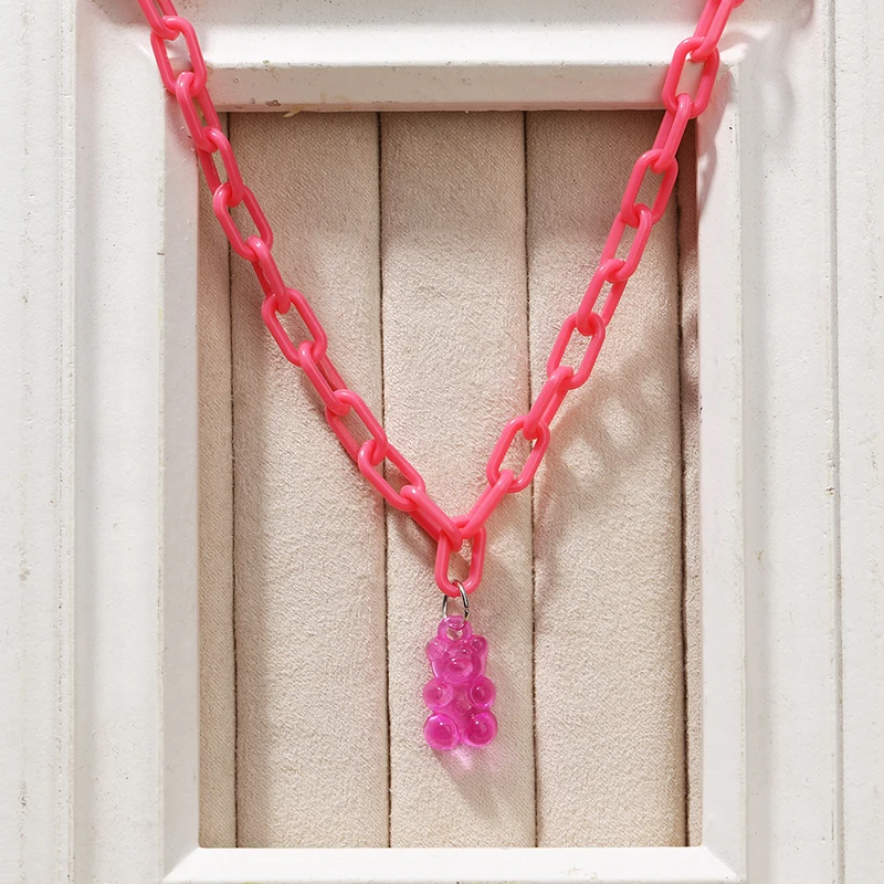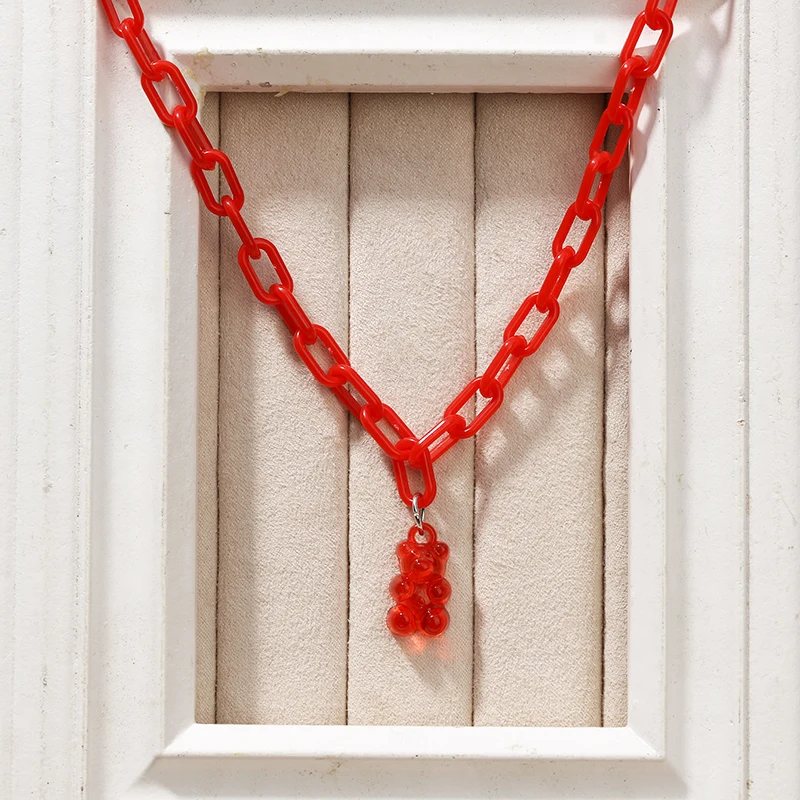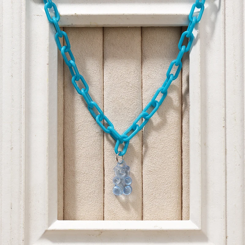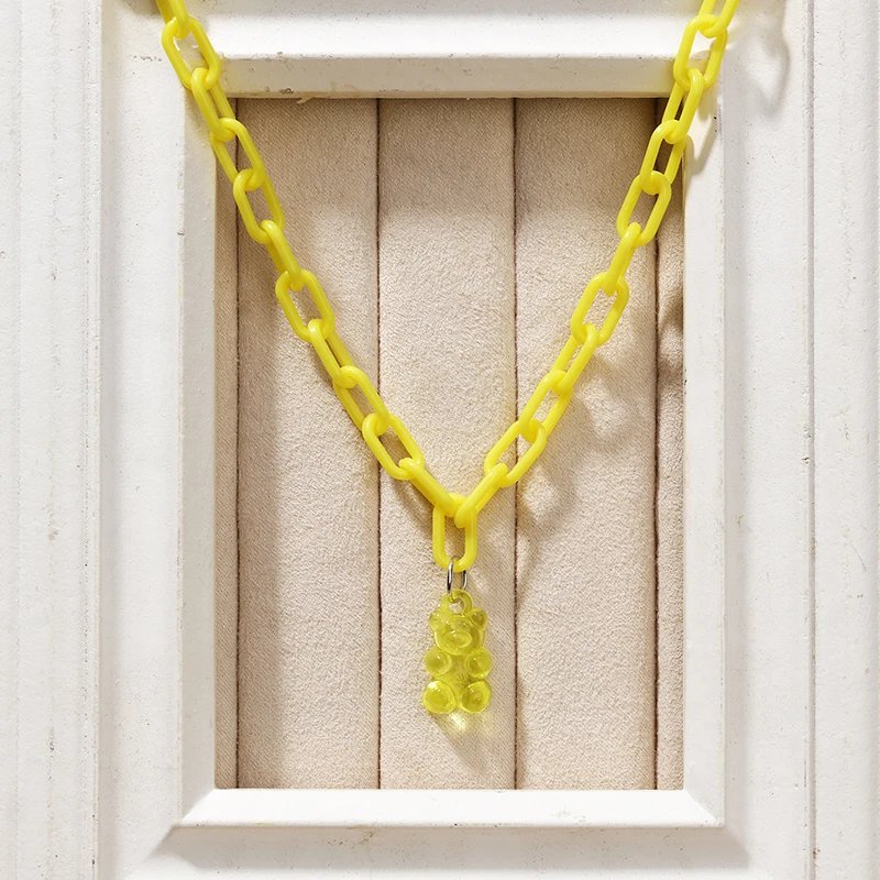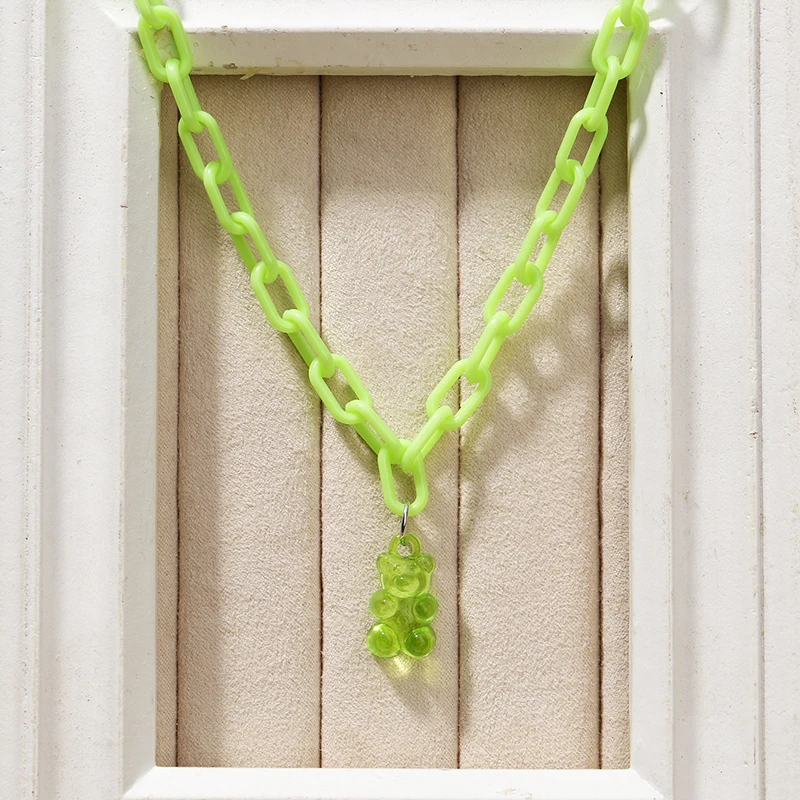 Hesiod 2022 Candy Color Mini Bear Necklace for Women Girl Christmas Gifts Cartoon Pendants Necklaces Birthday Jewelry Gifts