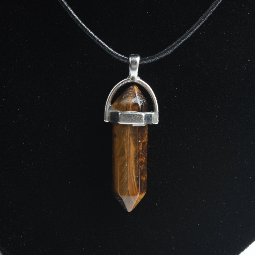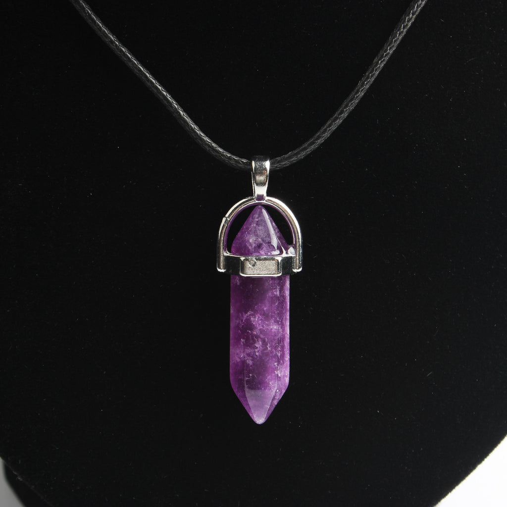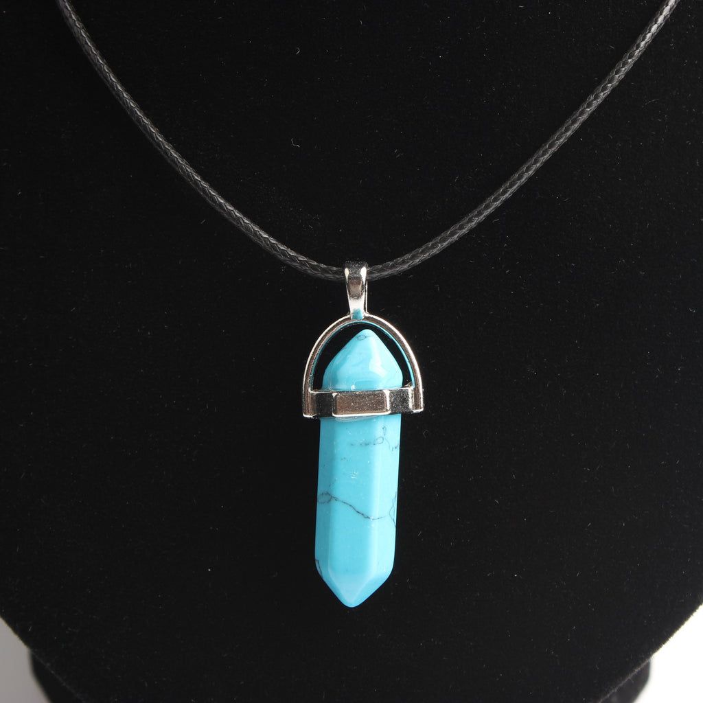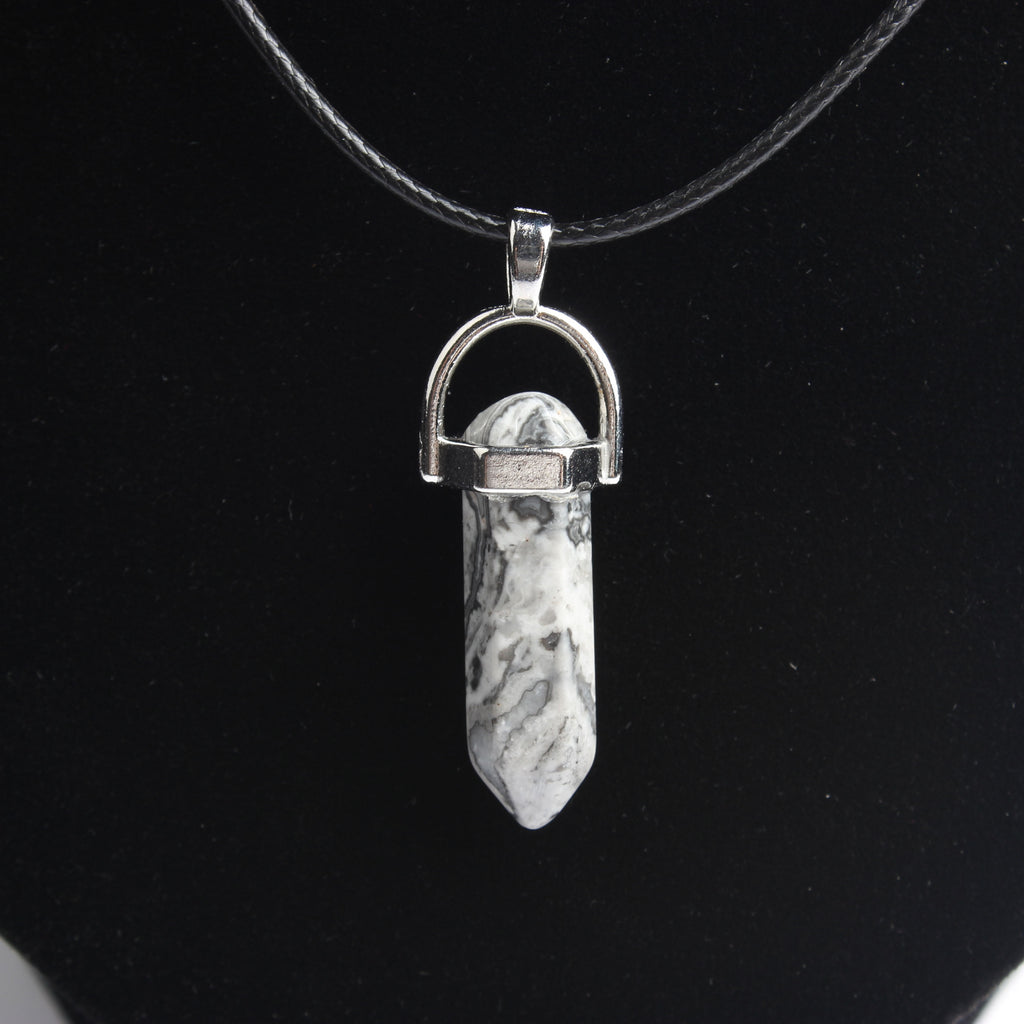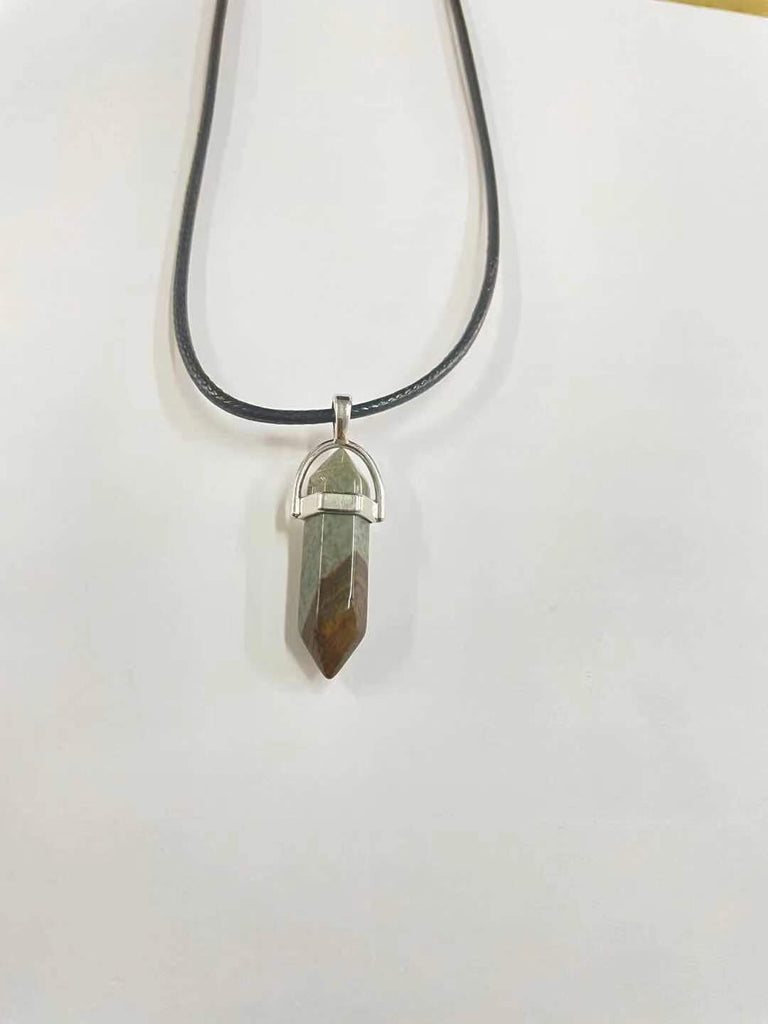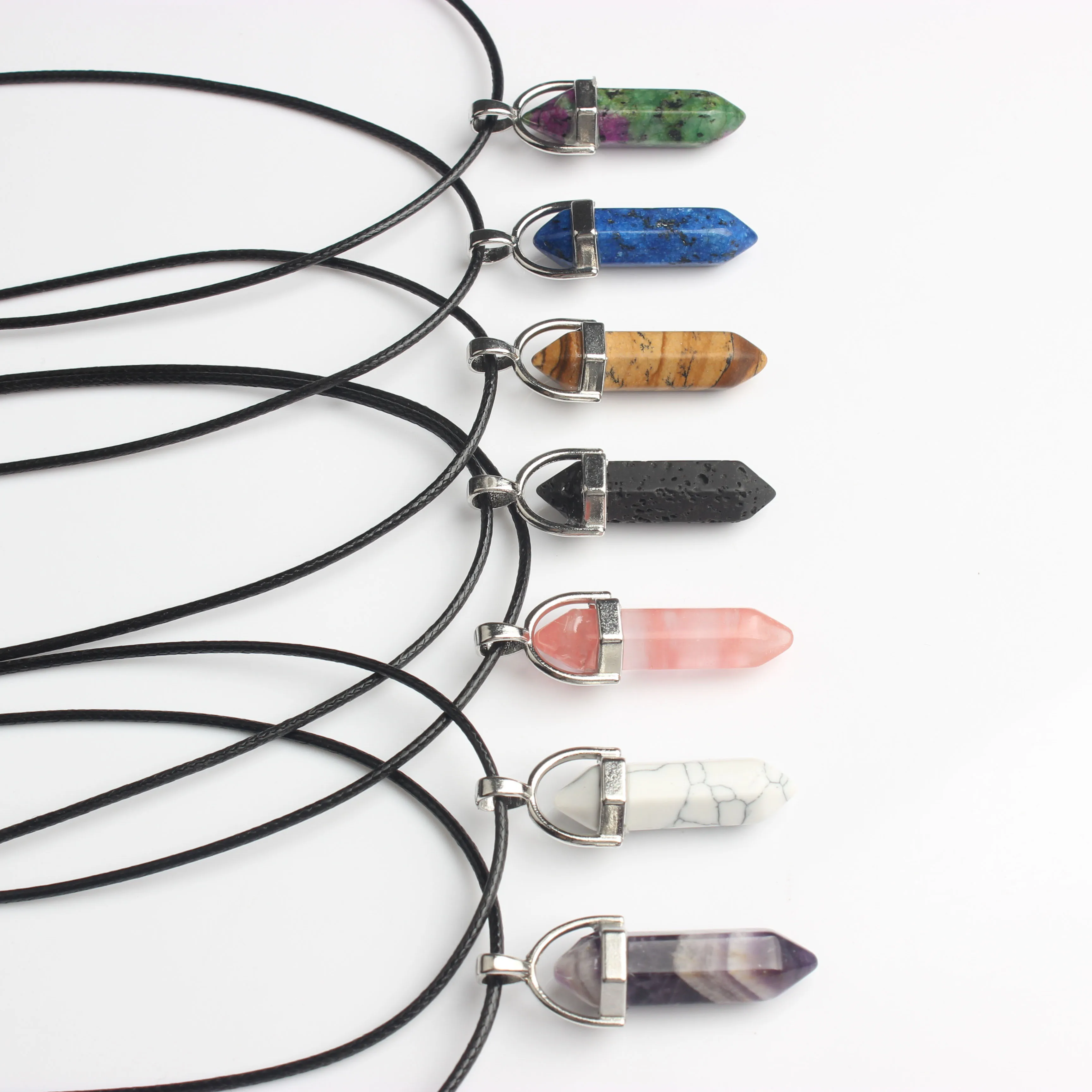 Hexagonal column necklace natural crystal pendant Stone Pendant Leather Necklace men's and women's jewelry Amulet