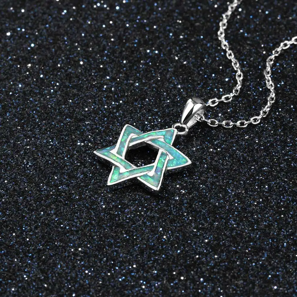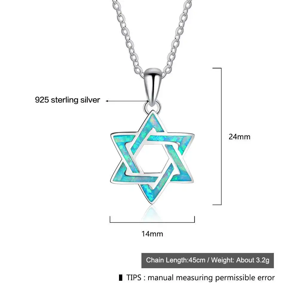 Hexagram Blue Opal Pendants Necklaces 925 Sterling Silver Magen David Star Fine Jewelry Birthd Gift for Her (Lam Hub Fong)
