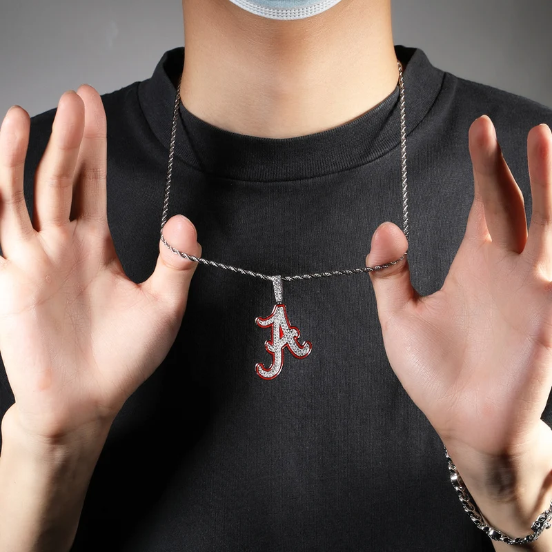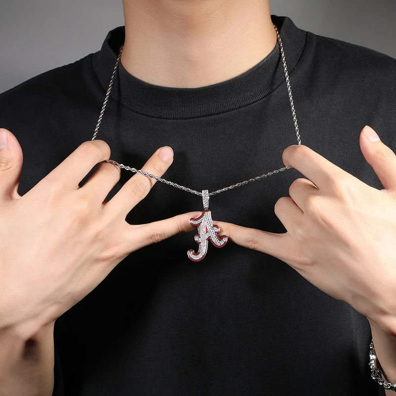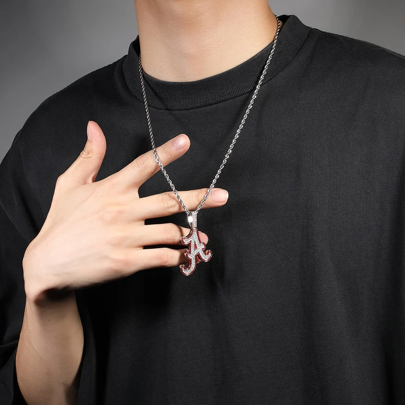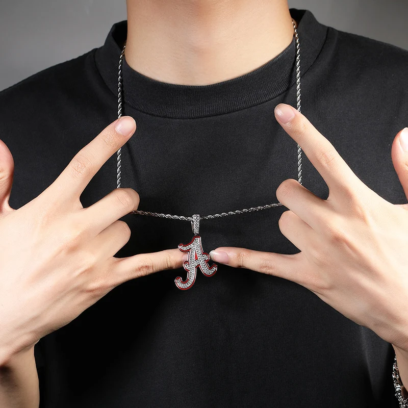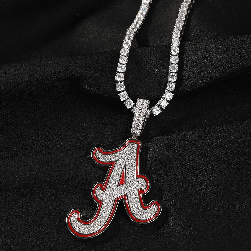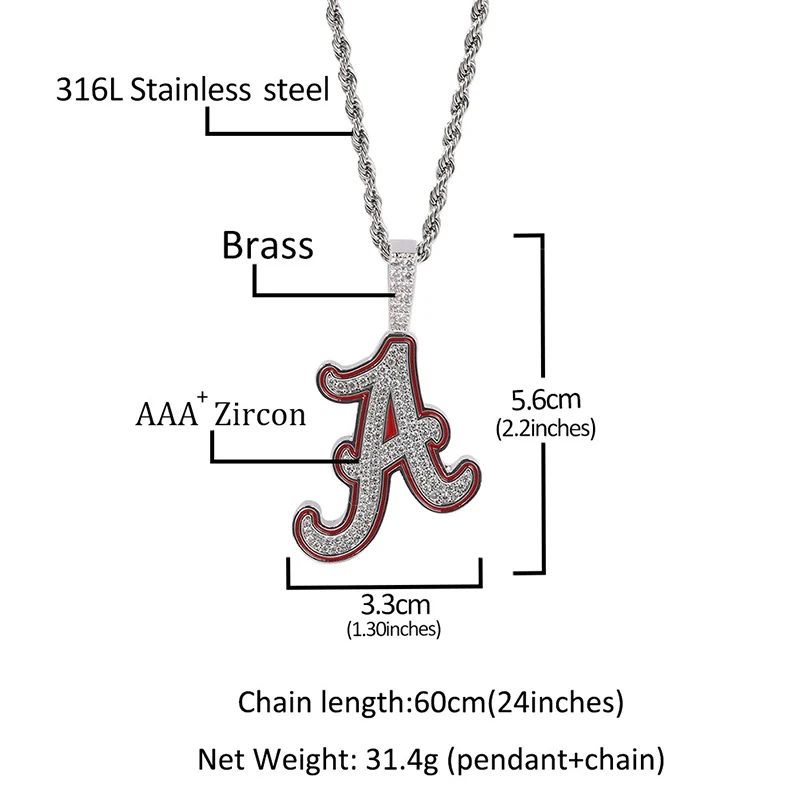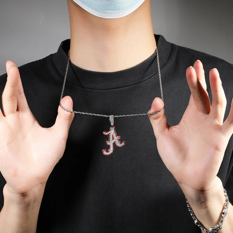 Hip Hop AAA+ CZ Stone Paved Bling Ice Out Solid Letter A Pendants Necklaces for Men Rapper Jewelry Drop Shipping