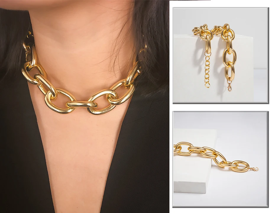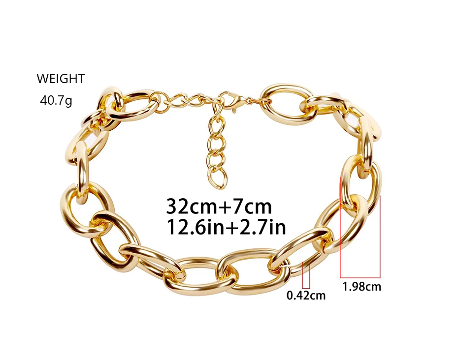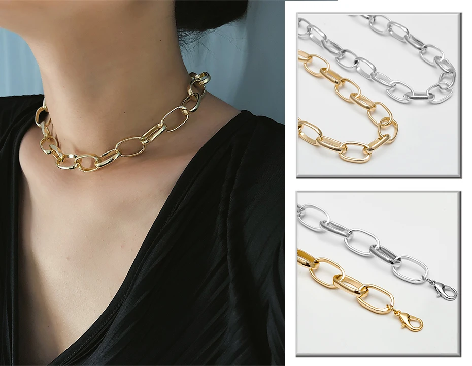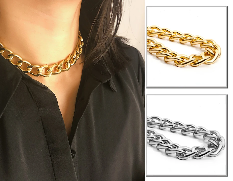 Hip Hop Chain Choker Necklace Gold Color Metal Cuban Collar Necklace for Women Chunky Statement Jewelry Necklace
